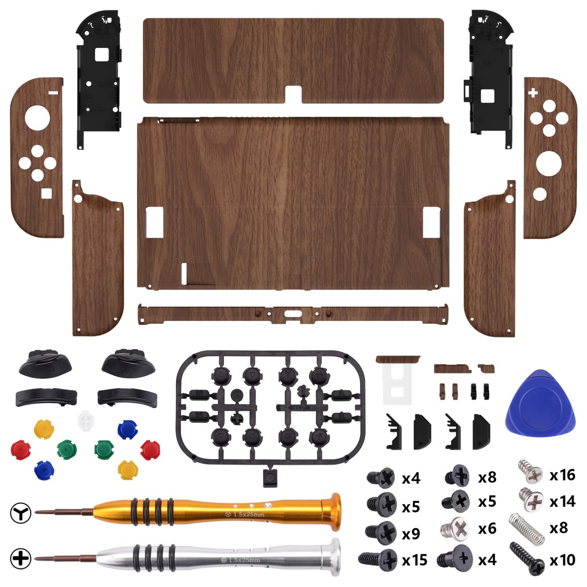 Color:木目調デザイン 本体ではない-eXtremeRate switch oledに対応用パターン柄バックプレート&金属スイッチ 背面スタンド、switch 有機elに対応用スイッチ ジョイコンハンドヘルドコントローラーハウジング、キックススタンドとフルセットボタンが付き【木目調デザイン】
