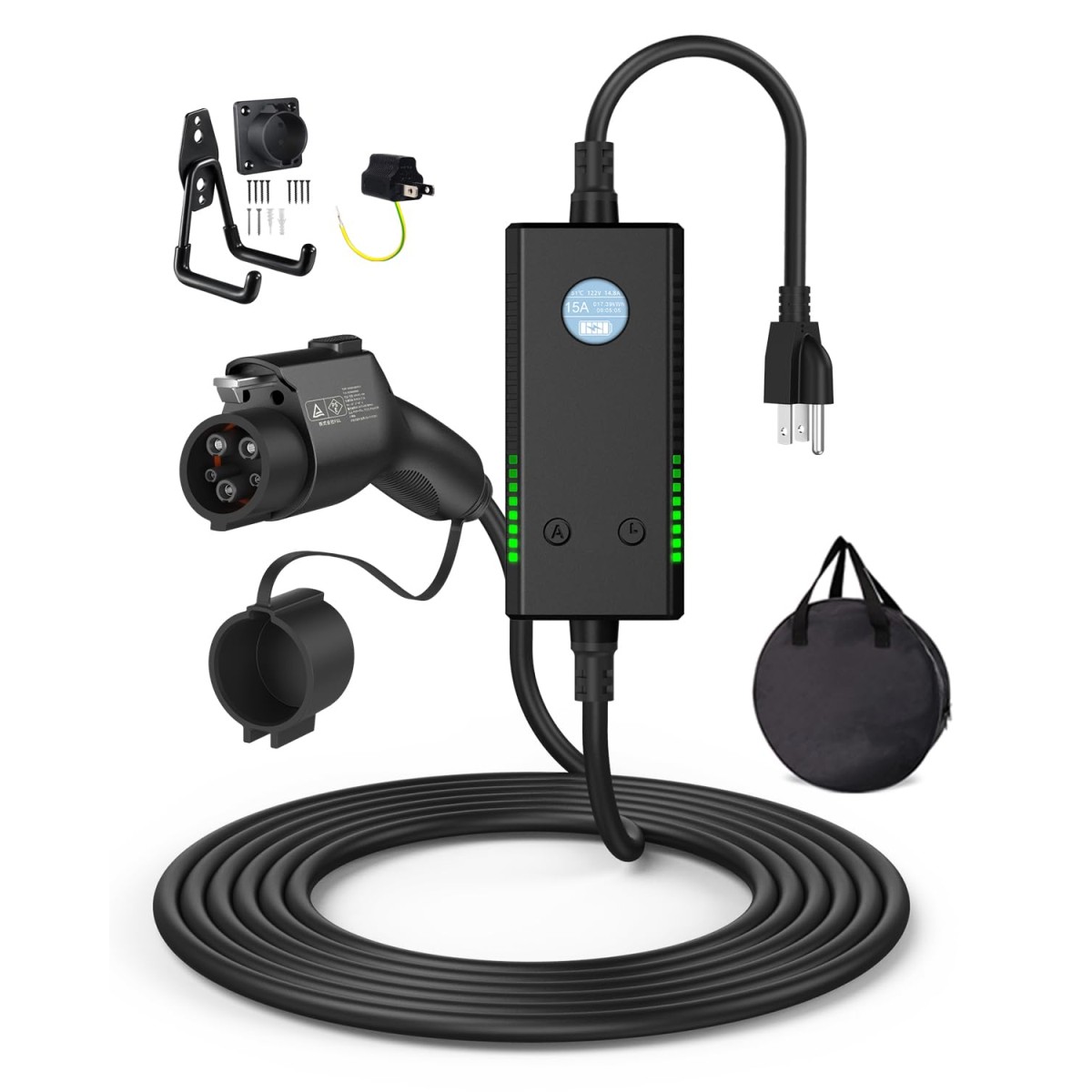Qkcabo 電気自動車 充電ケーブル SAE J1772 EV充電器 100V-240V 6A/8A/10A/13A/15A ポータブルEV充電器 5つ電流モード切替可能 長7.6メートル (100V 3P→2P変換)