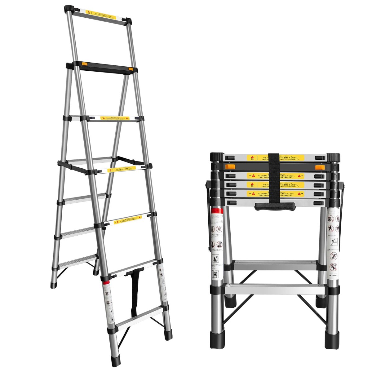Size:1.7m+2m(5段+6段)_MaterialType:ステンレス鋼 DayPlus 伸縮脚立はしご 安定兼用脚立 最長1.7m 5段+6段 踏み台 折りたたみ 折り畳み 伸縮ステンレス鋼 持ち