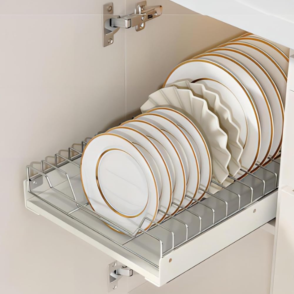 Size:プレートタイプ 食器 スライド 収納 食器棚 水切り ラック 引き出し 食器置き 棚 シンク下 縦置き 後付け 賃貸可能 ステンレス スライド式 お皿 皿 ボウル お椀 コップ キッチン収納 キッチン 引き出しの中 食器カゴ プレートタイプ