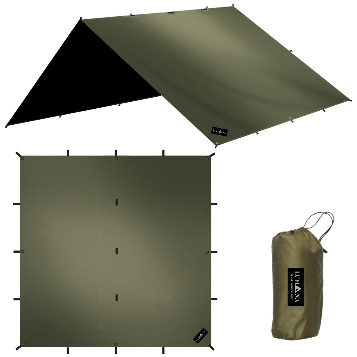Color:アーミーグリーン(難燃性ブラックコーティング )_Size:3.5mx3.5m 【日本ブランド】 LUHANA タープ 正方形 スクエア 難燃性 ポリエステル 耐水圧8000mm ブラックコーティング シルバーコーティング ループ19個 軽量 4mx4m / 3.5mx3.5m / 3mx3m / 4mx3m (アーミーグリーン(難燃性ブラックコーティング ), 3.5mx3.5m)