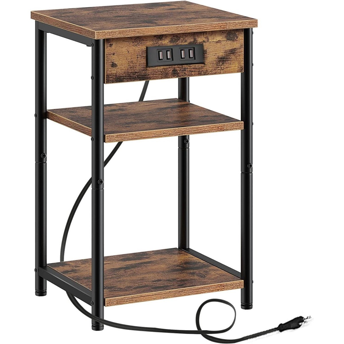 Size:30x40x58CM CJMM ナイトテーブル充電台付きエンドテーブル ナイトスタンド サイドテーブル 電源コンセント付き ソファテーブル 狭い空間 ベッドルームやリビングに ブラウンとブラック