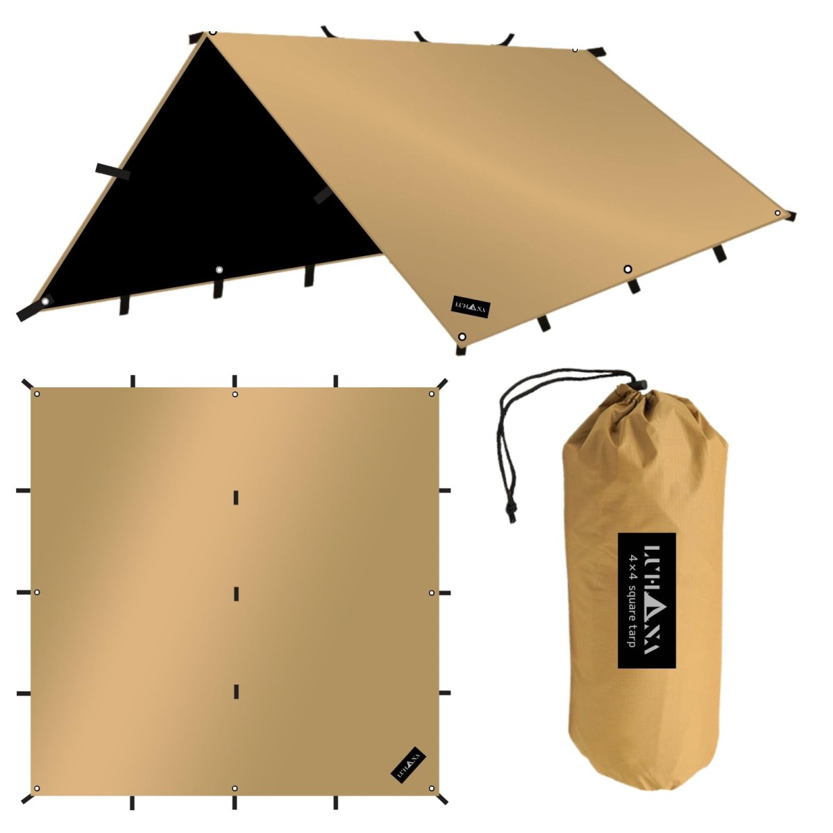 Color:サンドベージュ(難燃性ブラックコーティング )_Size:3.5mx3.5m 【日本ブランド】 LUHANA タープ 正方形 スクエア 難燃性 ポリエステル 耐水圧8000mm ブラックコーティング シルバーコーティング ループ19個 軽量 4mx4m / 3.5mx3.5m / 3mx3m / 4mx3m (サンドベージュ(難燃性ブラックコーティング ), 3.5mx3.5m)