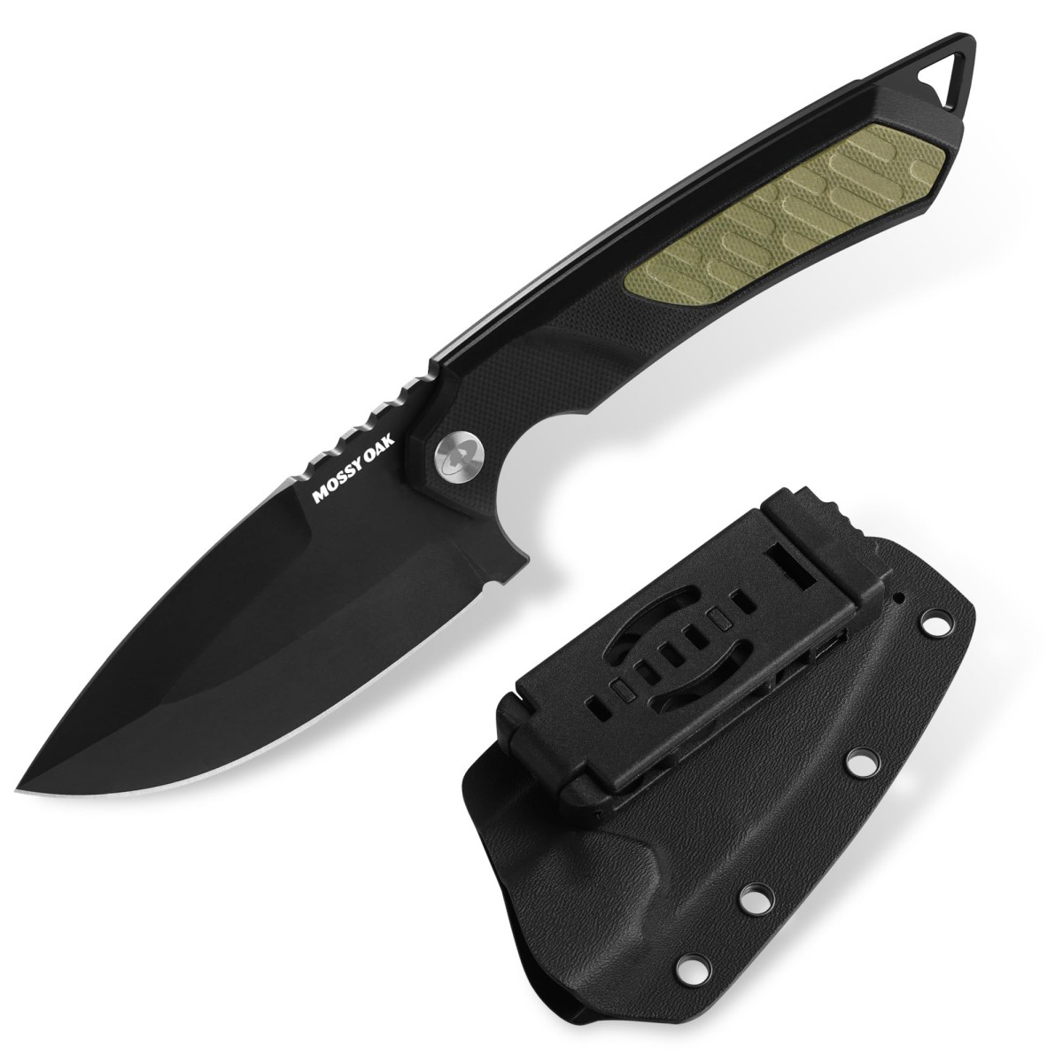 MOSSY OAK ナイフ シースナイフ D2鋼ブレード G10ハンドル フルタング構造 全長約21cm 刃渡り約10cm 黒チタン処理 DIY 登山 キャンプ 防災 釣り 【K鞘シース付き】