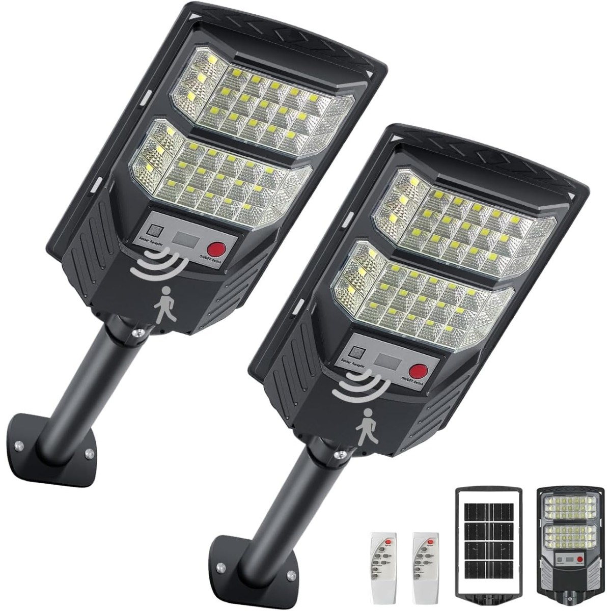 Style:2PACK LEDソーラー街灯 屋外 IP66防水 外灯 ソーラーライト、8500Kの太陽光発電の外灯、モーションセンサーとリモコン付きのLED夜明けから夜明けまでの防水スポットライト、駐車場や道などに適したのセキュリティライト