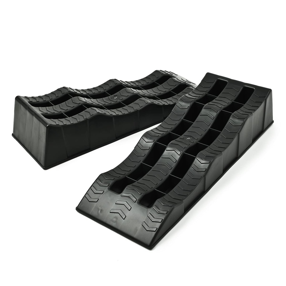 Rikopin(リコピン) カースロープ 耐荷重 4t 三段階持ち上げタイプ 滑り止め付き 国内検査機関耐荷重試験済 ローダウン車対応 スロープ ジャッキアシスト ジャッキ補助 軽量 コンパクト 長さ610 × 幅210 × 高さ120mm 2本セット (ブラック-滑り止め付き)