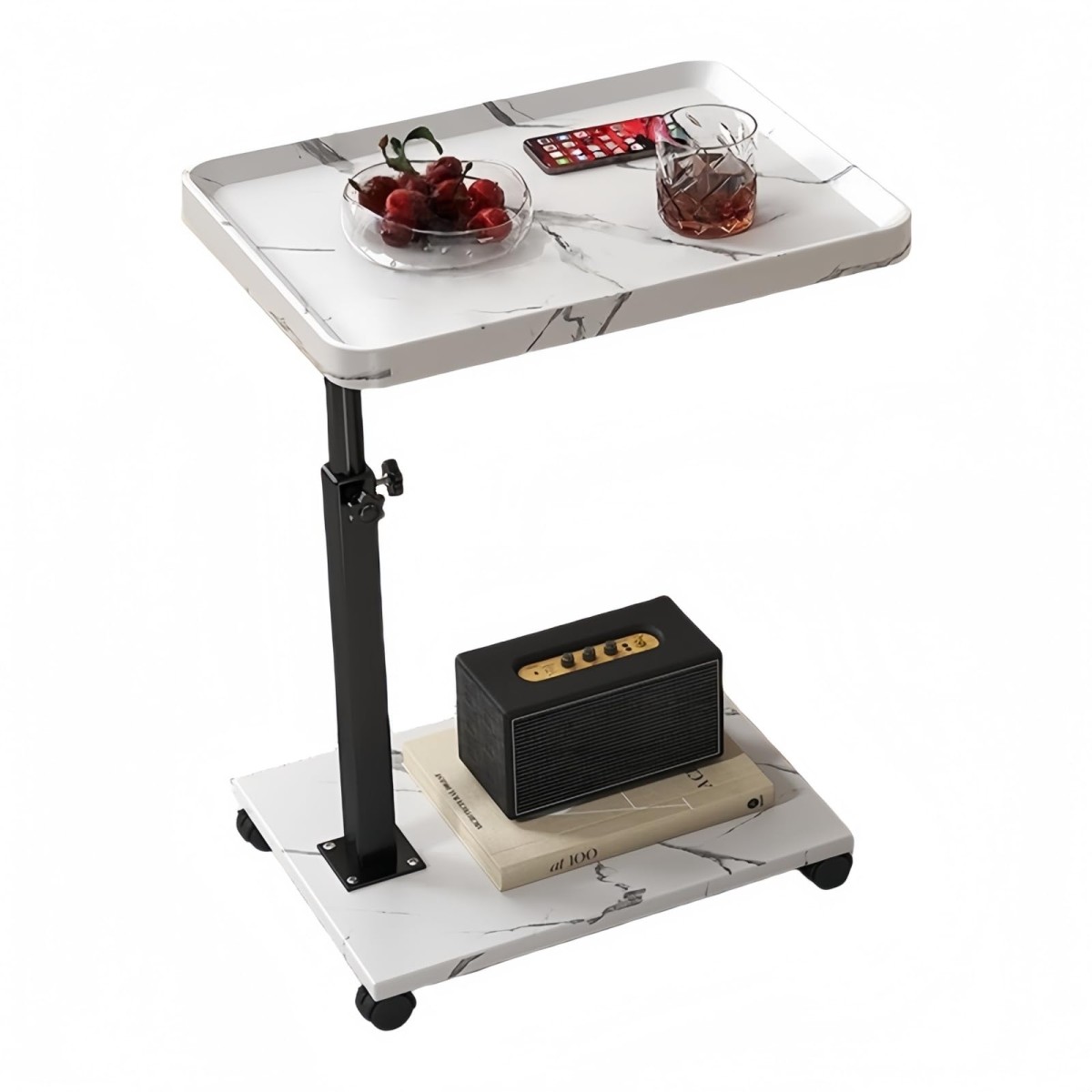 Color:ホワイト WoRefCra 昇降式 サイドテーブル キャスター付き 幅40×奥行30×高さ45-80cm ベッドサイド テーブル 木目調 C字型 簡易テーブル 小型 省スペース 移動便利 ホワイト