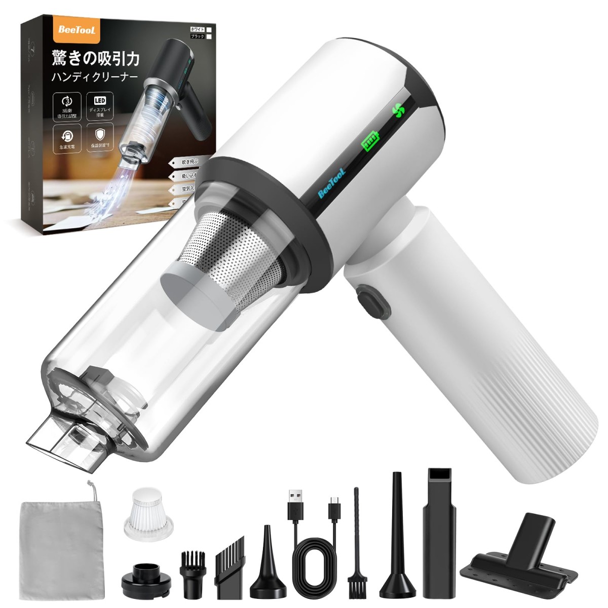 Color:ホワイト BeeTool ハンディクリーナー 多機能 【3種吸引モード&ディスプレイ搭載】40000Pa 驚きの吸引力 車用掃除機 コードレス 吹き飛ぶ/吸い込む/空気