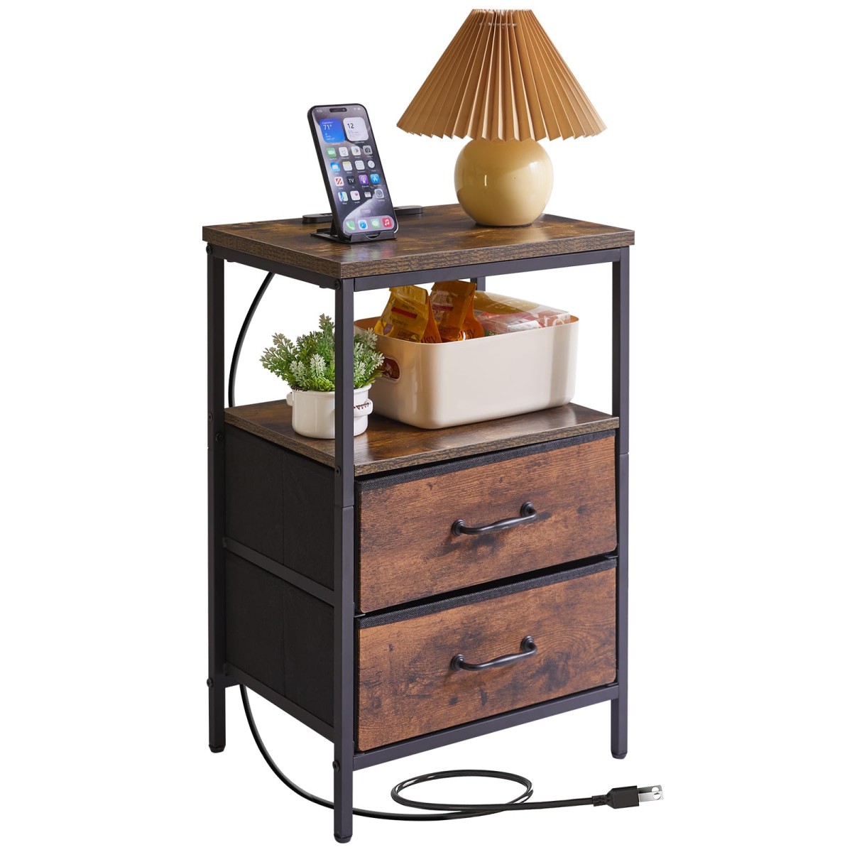 Color:復古色 Aibiju サイドテーブル ベッドサイドテーブル コンセント&USBポート付き ベッド横棚 寝室棚 布製引き出し 幅40奥行き30高さ58cm サイドチェスト