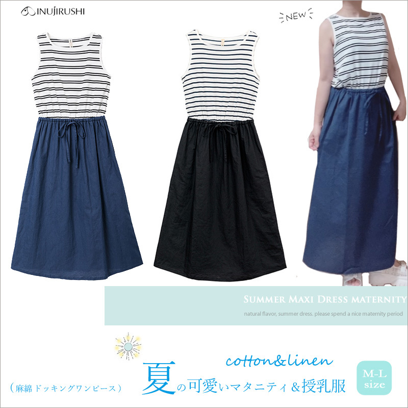 授乳口付きマタニティ麻綿 ドッキングワンピース (産前・産後)