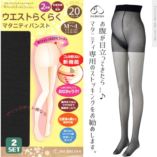 マタニティ ウエストらくらくマタニティパンスト2足組 ブラック 20デニール 犬印