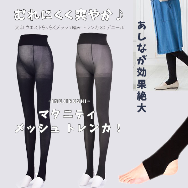 マタニティ メッシュトレンカ 80デニール おなからくらく仕様 M-L/L-LLサイズ/2カラー 犬印本舗