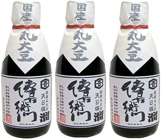 醤油に丸大豆と天日塩を使って杉桶に仕込こんで三年ねかせ、熟成させて搾り出した濃厚で旨みのある傳右衛門溜を3割ブレンドさせることで、自然の熟成からなる旨味が多く、甘く感じる程作用しサラリとした舌触りとキレのいい味に仕上がっています。