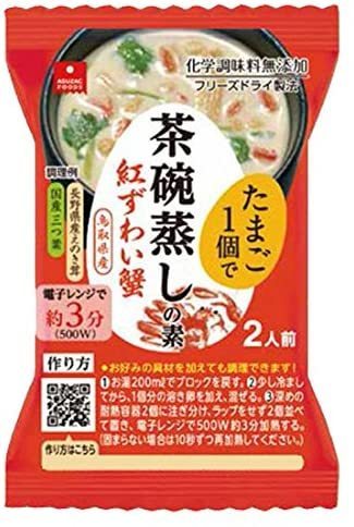だしの準備や具材の準備いらずで、手軽に、蟹の香り広がる上品な味わいの茶碗蒸しを作ることができます。 1個で2人前。
