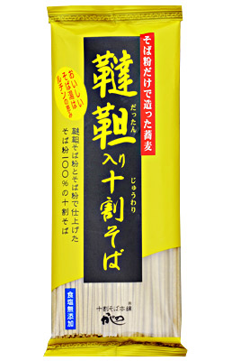 健康ブームで取り上げられる「ルチン」が、普通のそば粉の200倍も含まれている韃靼(だったん)そば粉を50%使用。普通そば粉50%とブレンドした十割そばです。