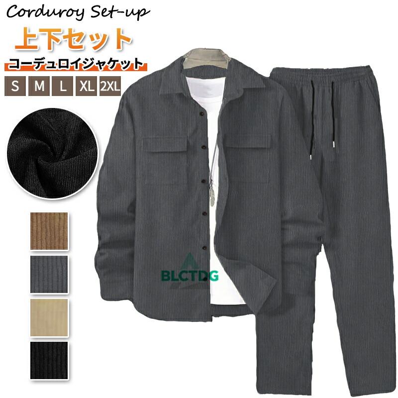 コーデュロイ セットアップ メンズ 上下セット 長袖 カジュアルシャツ ロング丈 パンツ ウエストゴム ストレートパンツ 無地 通勤 通学 ファッション 秋 春 冬