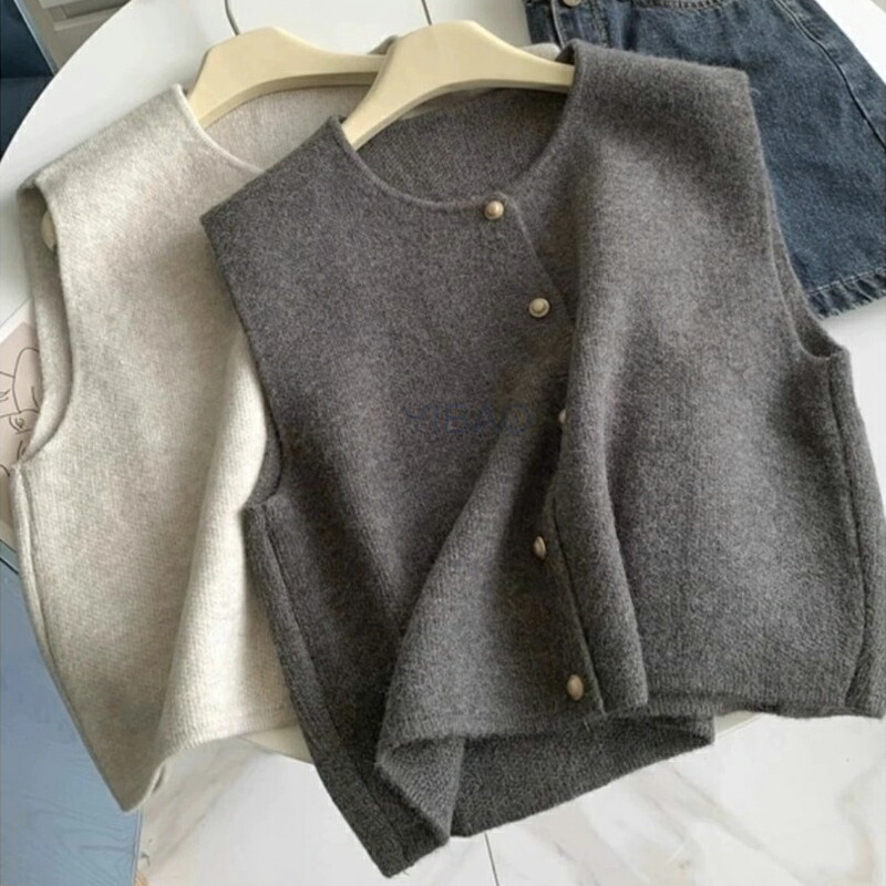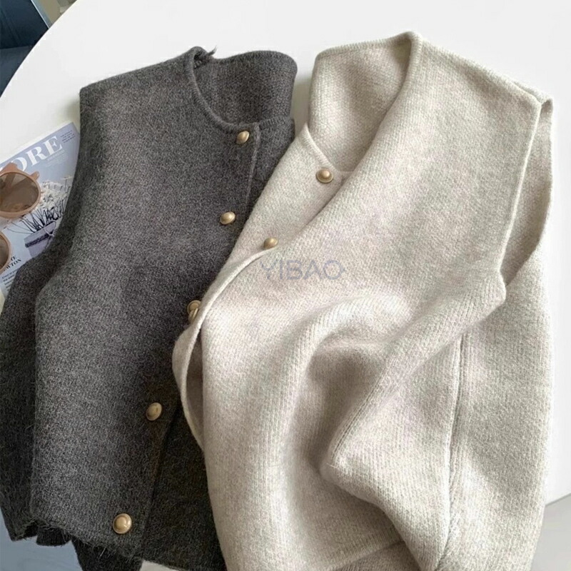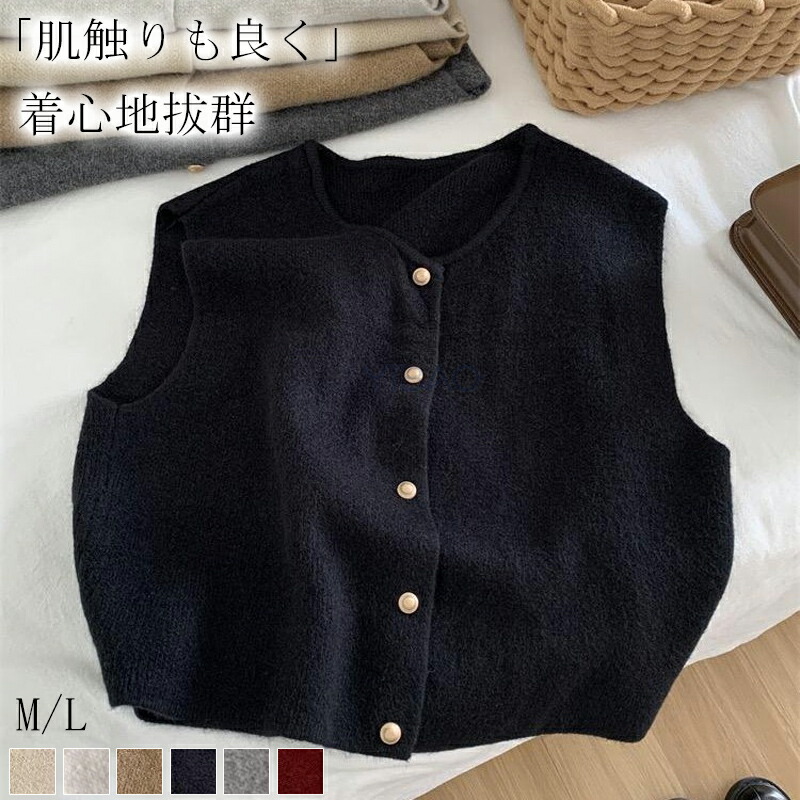 ジレ レディース ニットベスト 春秋 ニットジレ ノースリーブニット カジュアル 前開き 韓国風 ショート丈 春秋冬 ニットトップス 柔らかい ショートベスト 厚手