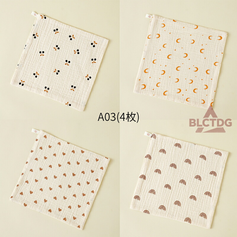 ガーゼタオル 4枚組 ベビー フェイスタオル ハンドタオル ガーゼタオル ガーゼハンカチ キッズ ループ付 6重 保育園 25*25cm 綿 綿100% 入園準備 新生児 バスタオル 赤ちゃん よだれふき 食事 沐浴 出産祝 柔らかく 吸水
