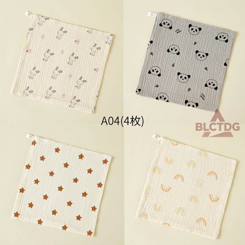ガーゼタオル 4枚組 ベビー フェイスタオル ハンドタオル ガーゼタオル ガーゼハンカチ キッズ ループ付 6重 保育園25*25cm綿 100% 入園準備 新生児 バスタオル