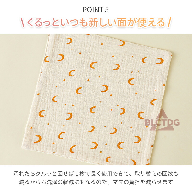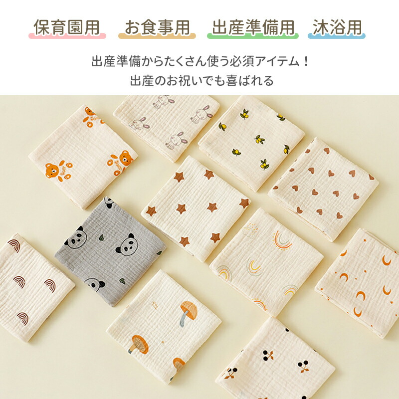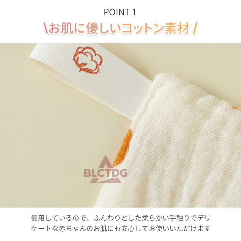 ・用途:沐浴の時、食事や授乳時、汗拭く、おむつ替えなど色んな場面で使えます。