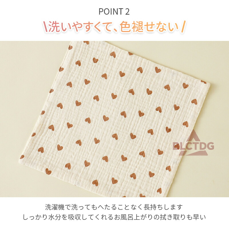・ガーゼタオルの特徴:吸水抜群、速乾、洗うほど柔らかくなり、硬くなりません。