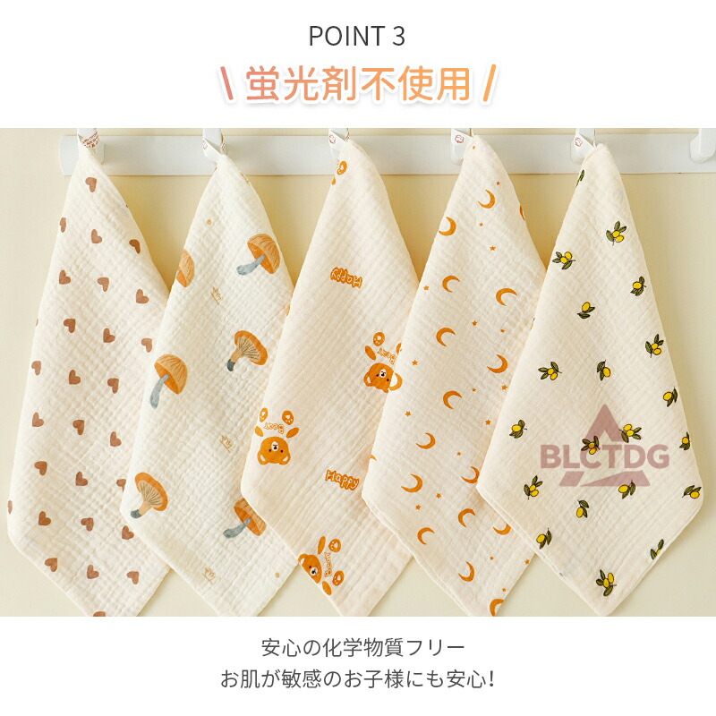 ガーゼ素材を採用することにより、吸水性と通気性が大幅にアップ出来た。パイル地より柔らかく、洗濯しても硬くならず。 ハンカチ プレゼント 出産祝い