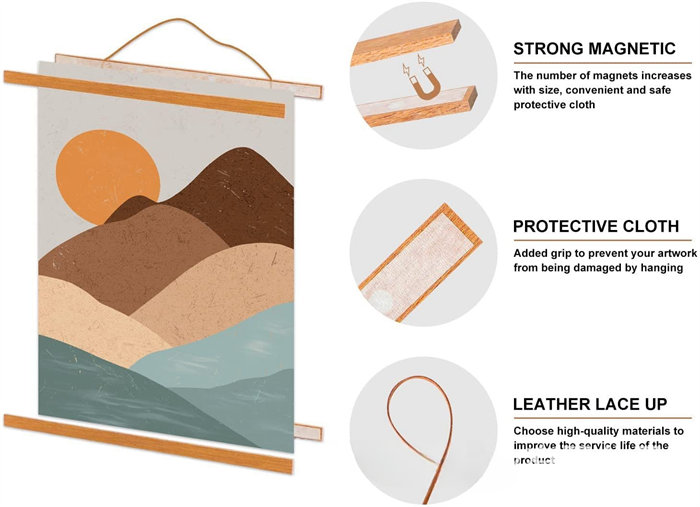 タペストリー 棒 マグネット式 21/31/41/51/61cm幅 ポスターハンガー 天然木 木製 ウッドフレーム 手拭い用 両面 リバーシブル タペストリー棒 タペストリーバー 磁石 壁掛け おしゃれ シンプル 掛け軸 縦飾り タペ棒 記念 映え 簡単 手軽 てぬぐい ハンカチ