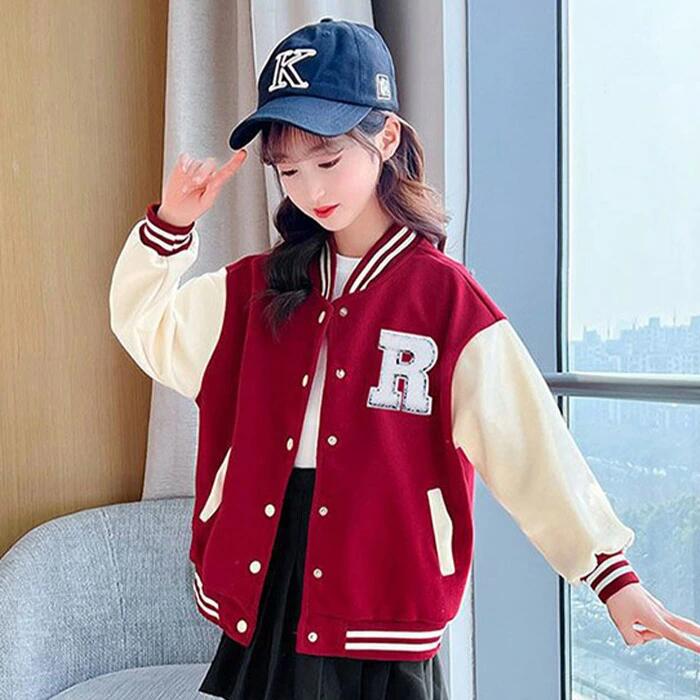 バイカラー アウター ブルゾン コットン 子供服 長袖 通気性抜群 野球服 ジュニア スタジャン ジャンパー ジャケット 女の子 キッズ スプリングコートカジュアルコーデ シンプル 上着 スウェット 春 秋 冬 通園 通学 女児 ブラック レッド 110/120/130/140/150/160/170cm