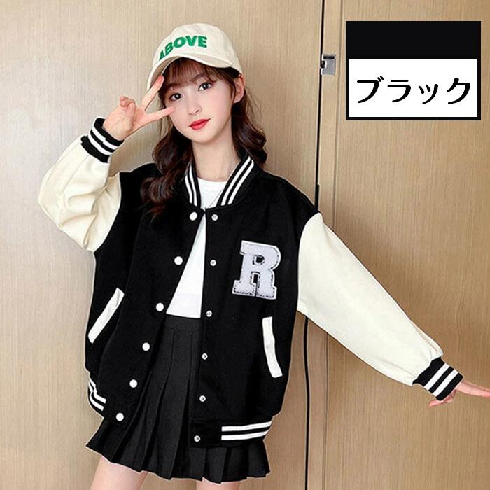バイカラー アウター ブルゾン コットン 子供服 長袖 通気性抜群 野球服 ジュニア スタジャン ジャンパー ジャケット 女の子 110/120/130/140/150/160/170cm