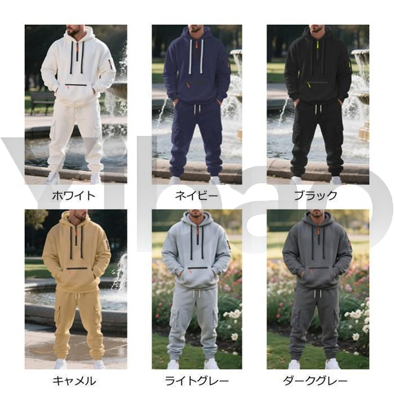 裏起毛 上下セット メンズ 防寒 セットアップ ジャージ スウェット 秋 冬 無地 長袖 保温 暖かい ハーフジップ プルオーバーパーカ ロング丈 カーゴパンツ ウエストゴム トップス ボトムス おしゃれ カジュアル シンプル 部屋着 ルームウエア 運動着 ファッション 秋物 春 冬