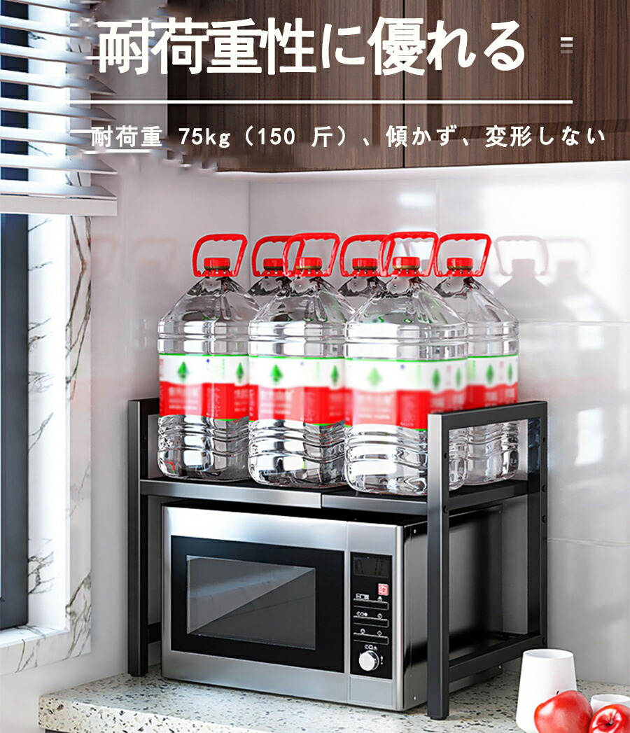 レンジ上ラック キッチンラック 伸縮 トースターラック レンジラック 高さ調節 レンジ台 大型レンジ対応 電子レンジ 炊飯器 カウンター上 収納ラック