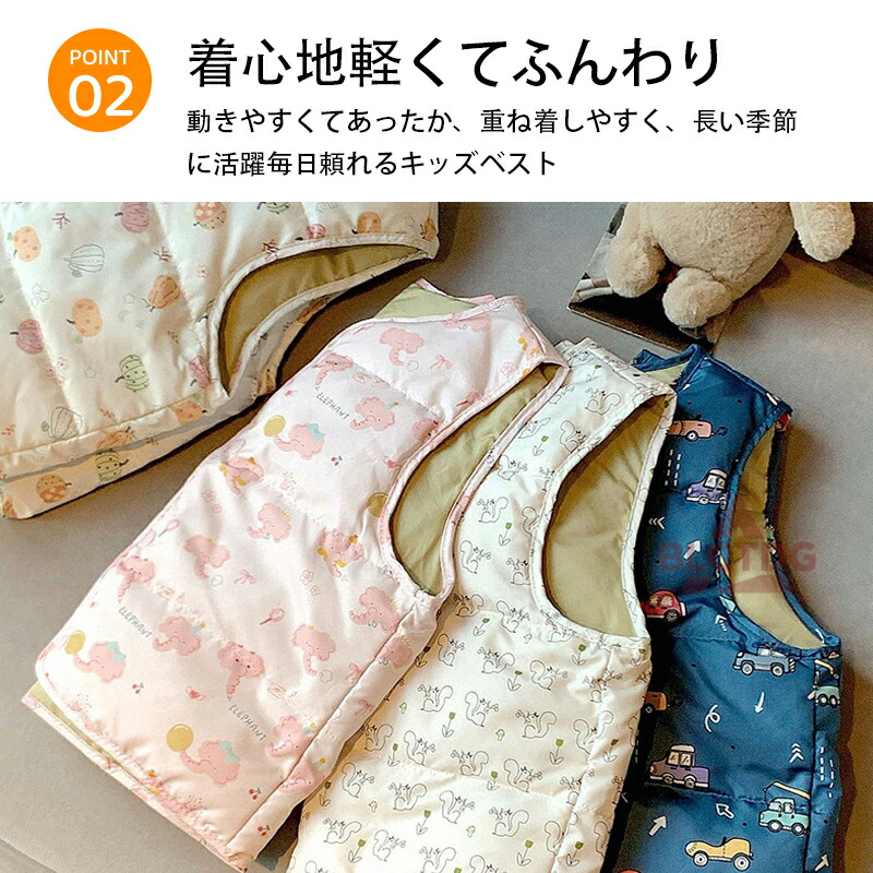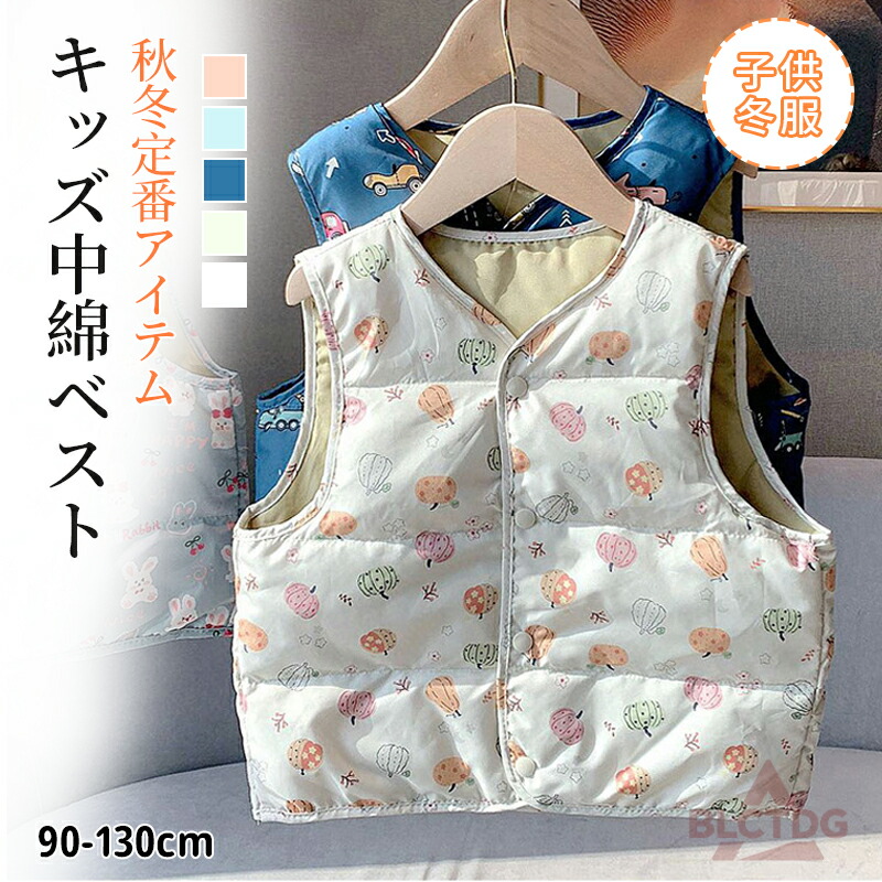 中綿ベスト ダウン風ベスト キッズ ジュニア 子供用 女の子 男の子 アウター Vネック 前開き 前ボタン スナップボタン 上着 カジュアル シンプル ソリッドカラー あったかい あたたかい 防寒 寒さ対策 暖かい ぬくぬく 冬 こども服 子ども服 子