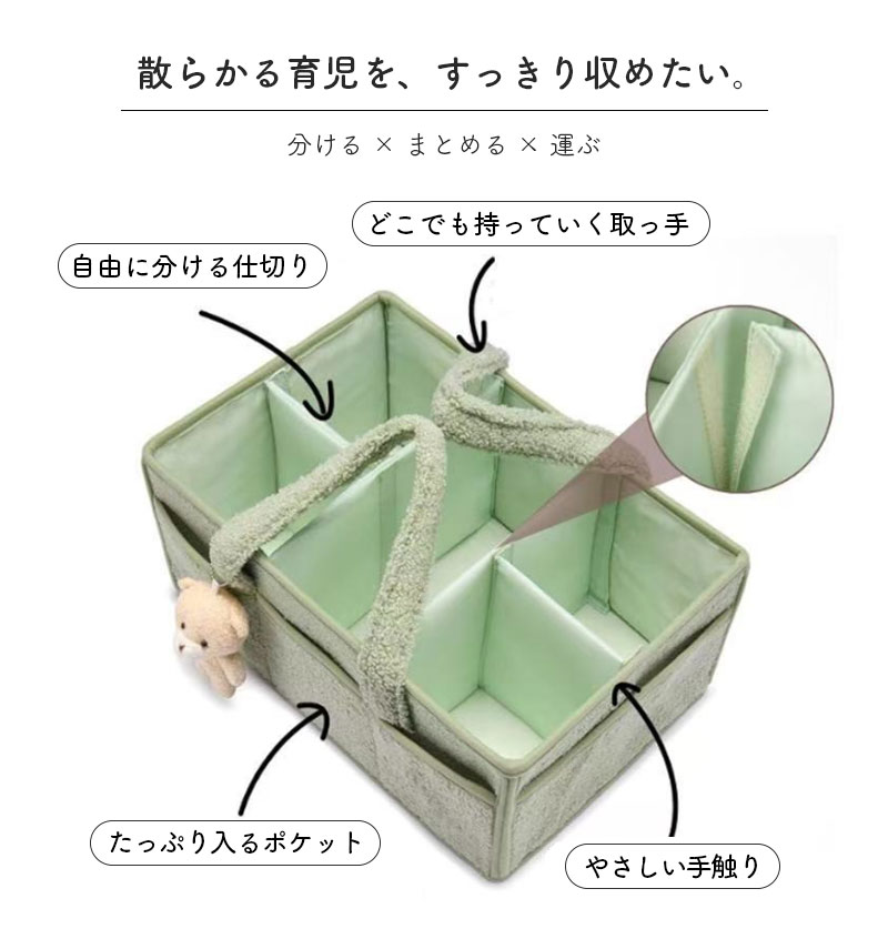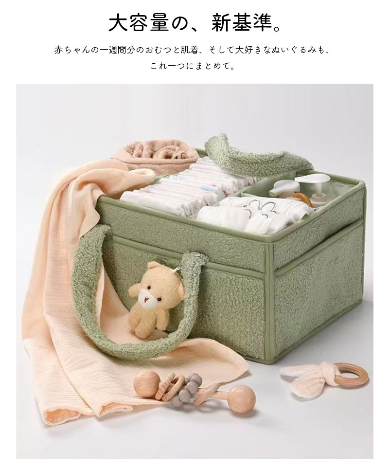 おむつストッカー おむつ 収納 バッグ おしゃれ 大容量 おむつバッグ ベビー用品 ベビーグッズ 出産準備 赤ちゃん 収納ボックス 出産 妊娠 ママ プレママ 育児 便利 おむつ入れアイ38*25.4*17.8 ボリーグ リーン ピンク