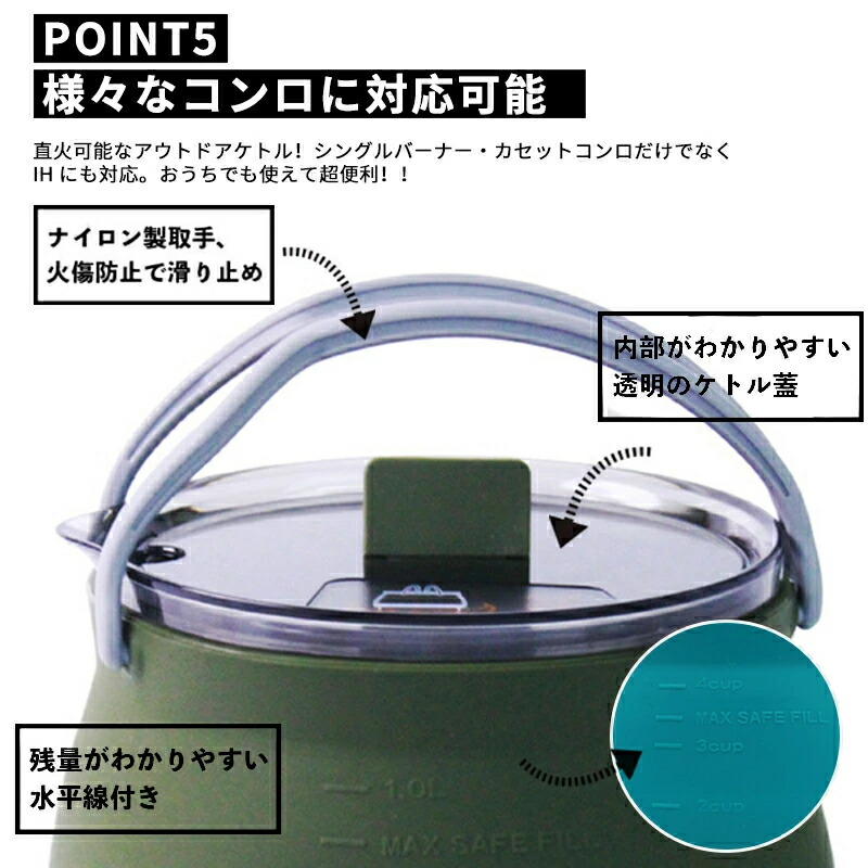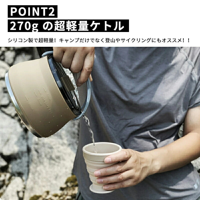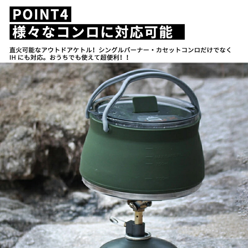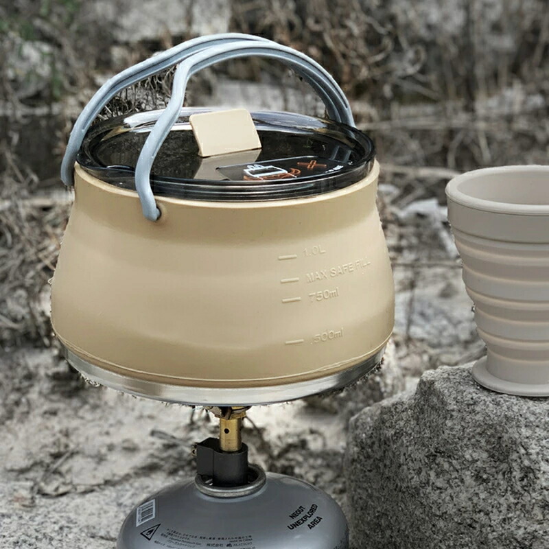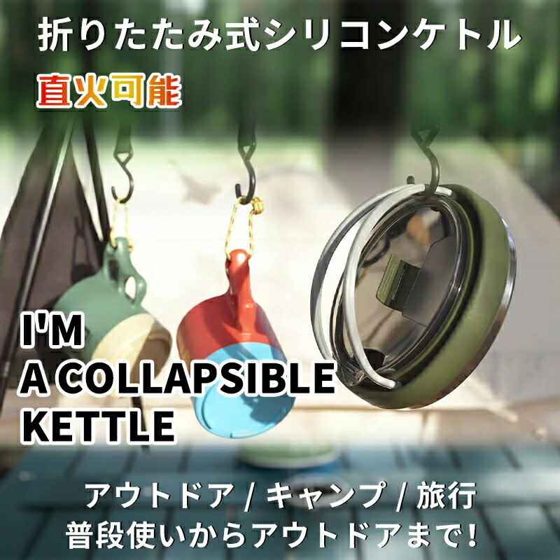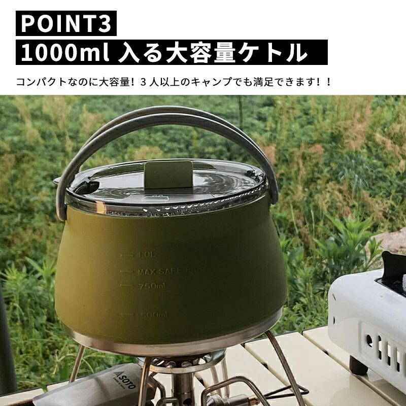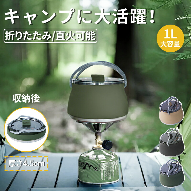 ケトル シリコンケトル 折りたたみ 折り畳み 折りたたみケトル アウトドア キャンプ ソロキャンプ 登山 用品 1.0L コンパクト 湯沸し やかん ポット 直火可能 コンパクト 持ち運び便利 収納簡単 軽量 おしゃれ シンプル
