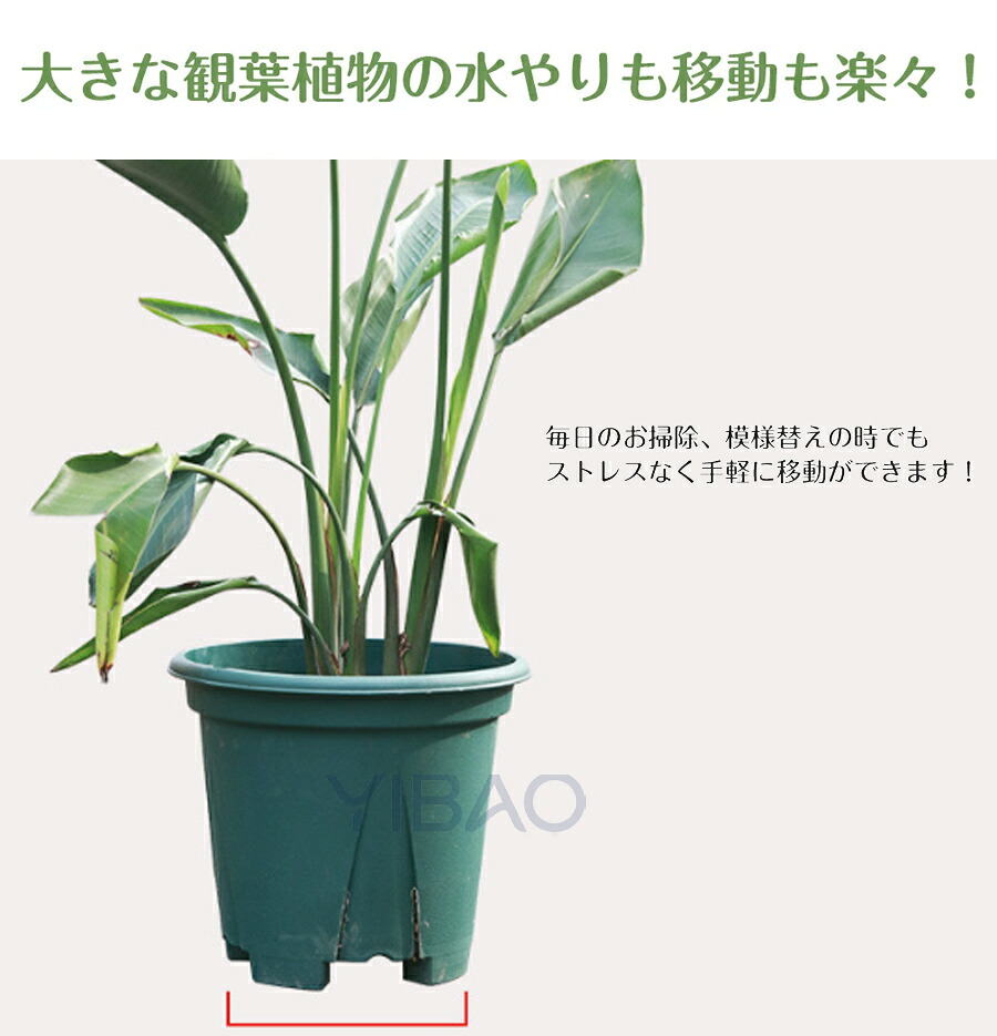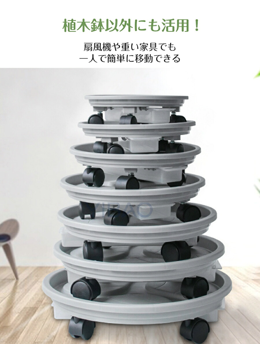キャスターは、工具不要の簡単取り付けですので、どなたでもお使いいただけます。さまざまな形状の植木鉢に適しており、植木鉢、花瓶、大型植物鉢を簡単に移動でき、ゆかいたを傷つけることなく、車輪に静音設計が施されています。