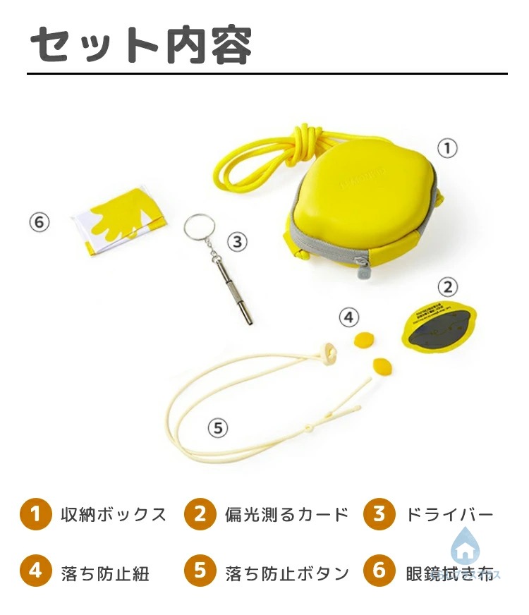 サングラス本体*1 収納ボックス*1 偏光測るカード*1 ドライバー*1 落ち防止紐*1 落ち防止ボタン*2 眼鏡拭き布*1