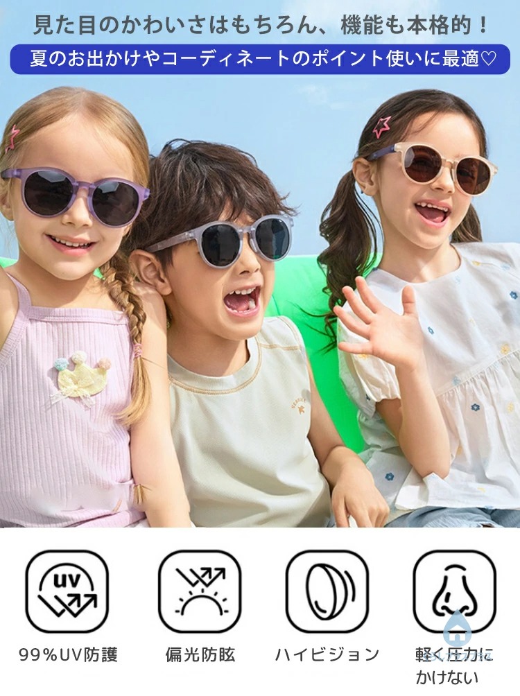 サングラス キッズ 子供用 紫外線99%カット 超軽量 赤ちゃん ベビー 男の子 女の子 夏 3歳-12歳 ケース付き 超軽量 おしゃれ かわいい 耐久性 子供用