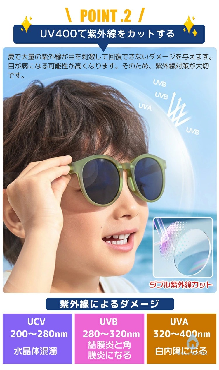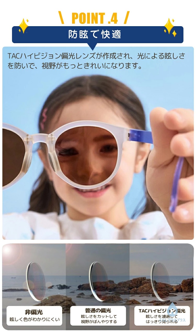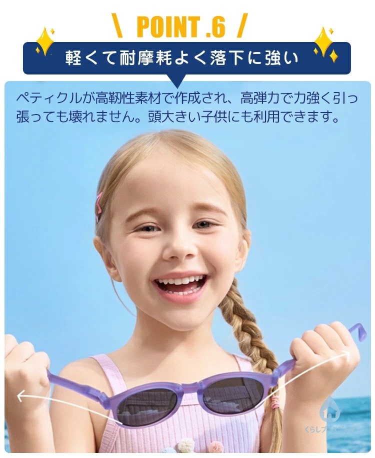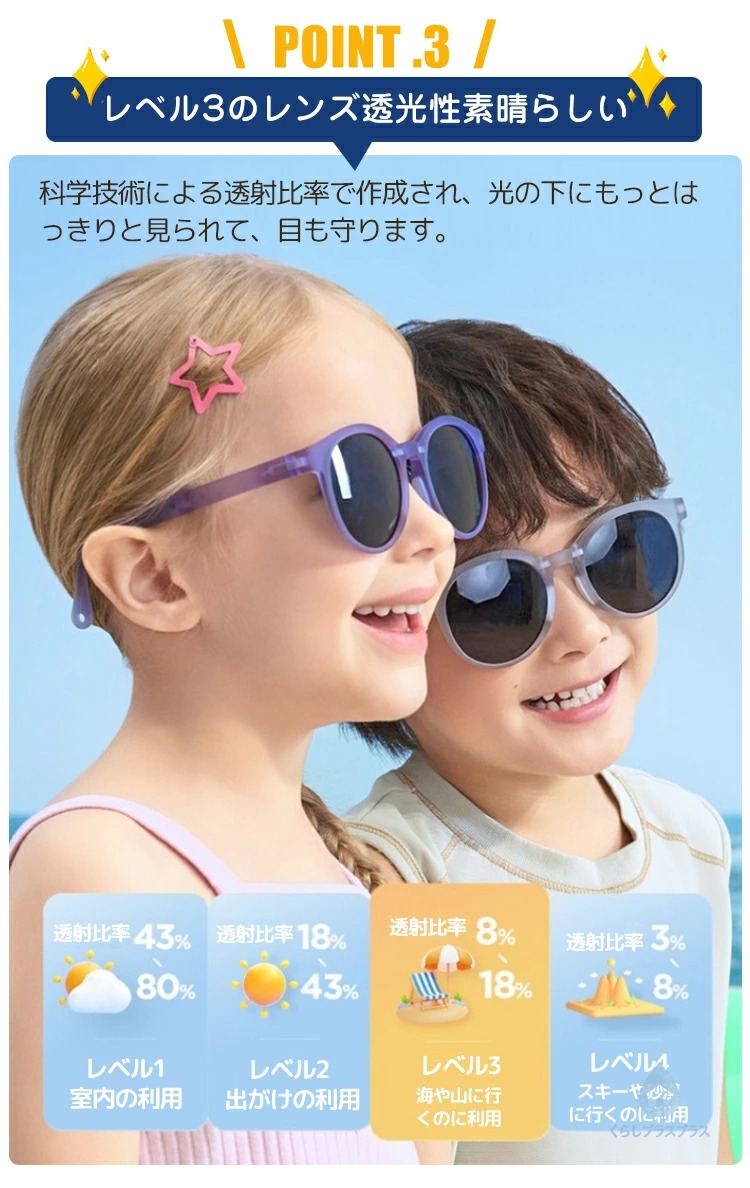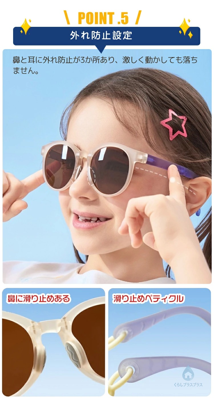 安全と機能性を両立させた画期的な子供用メガネで紫外線対策と滑り止め機能を持ちます。