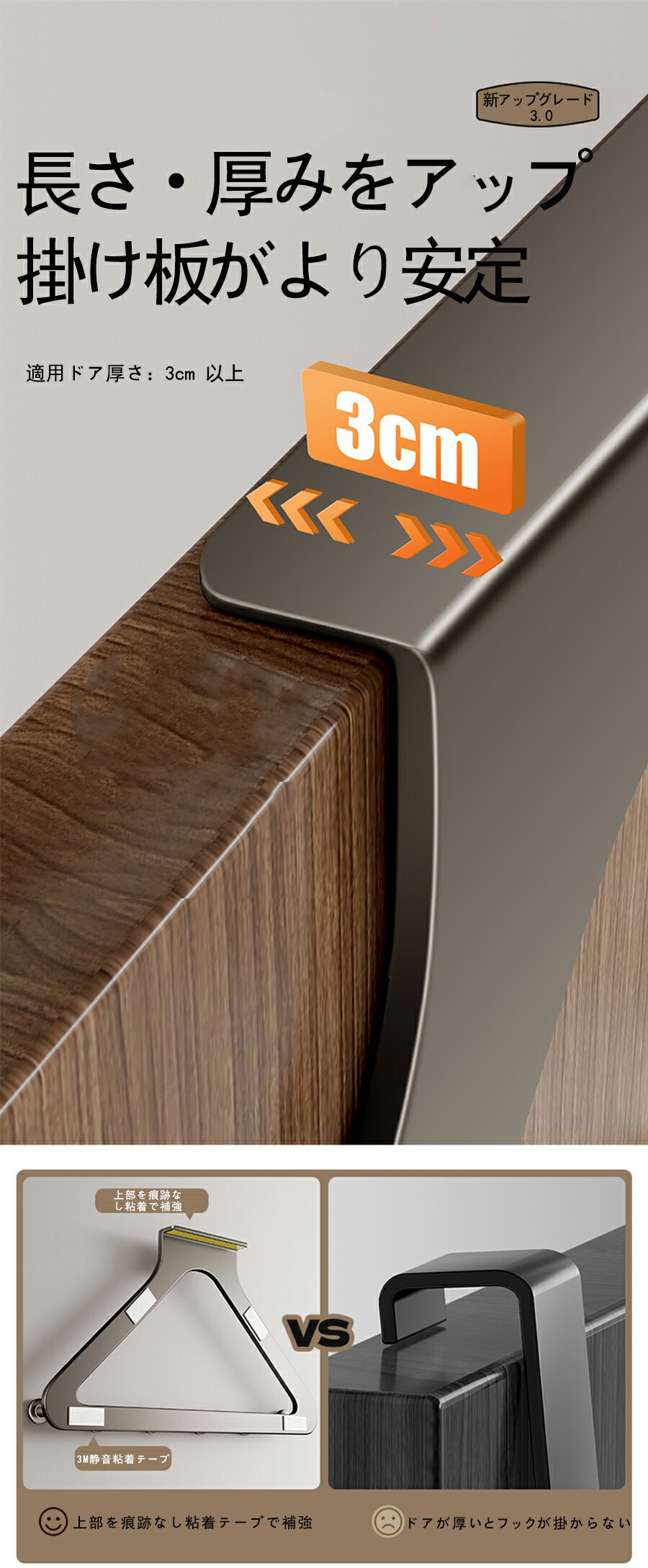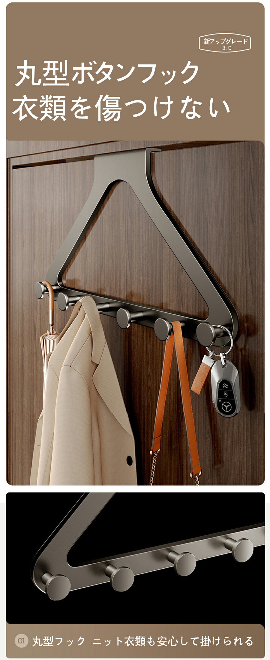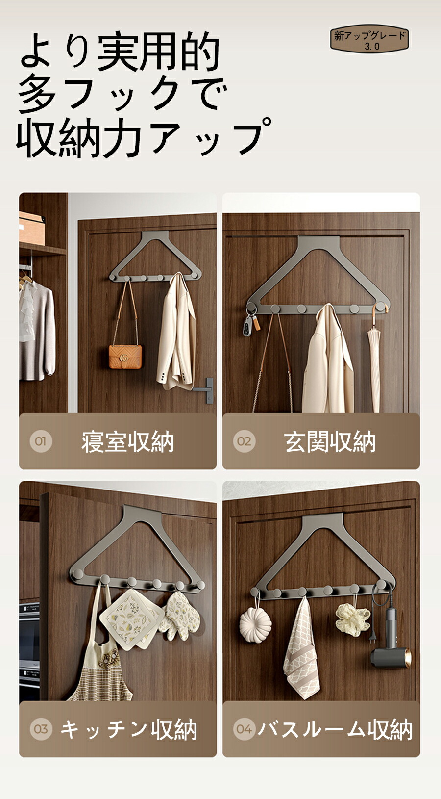 ドアハンガーフック ドア掛けフック 吊り下げ式 帽子 省スペース収納 衣類掛け 変形しにくい 工具不要 上下ダブルフック カバン ドアに引っ掛けるだけ 帽子 バッグ 洋服掛け 壁付け 頑丈 コンパクト 収納 木 洋服 おしゃれ 壁掛けハンガー ハンガー