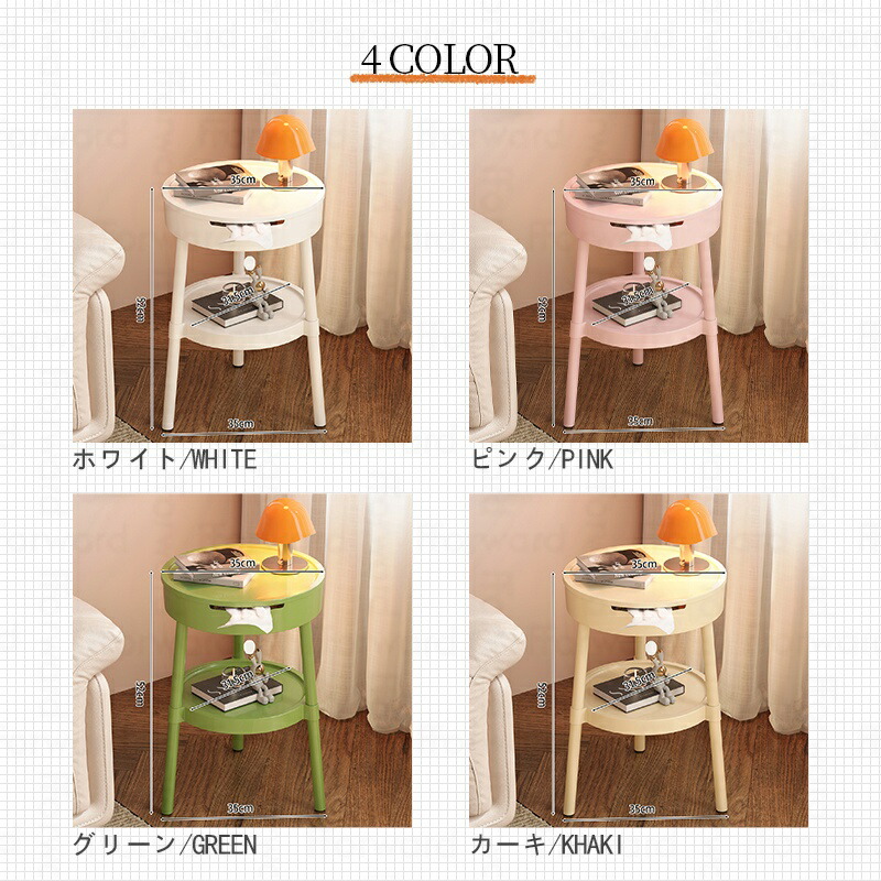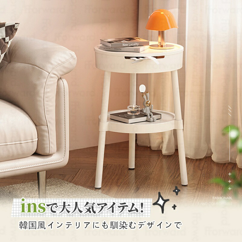 サイドテーブル ナイトテーブル 多機能 ソファサイドテーブル ティッシュボックス収納 幅35cm スリム モダン レトロ シンプル キュート 韓国インテリア 小さい 寝室 テーブル ベッド横 ソファ おしゃれ 韓国 北欧 一人暮らし