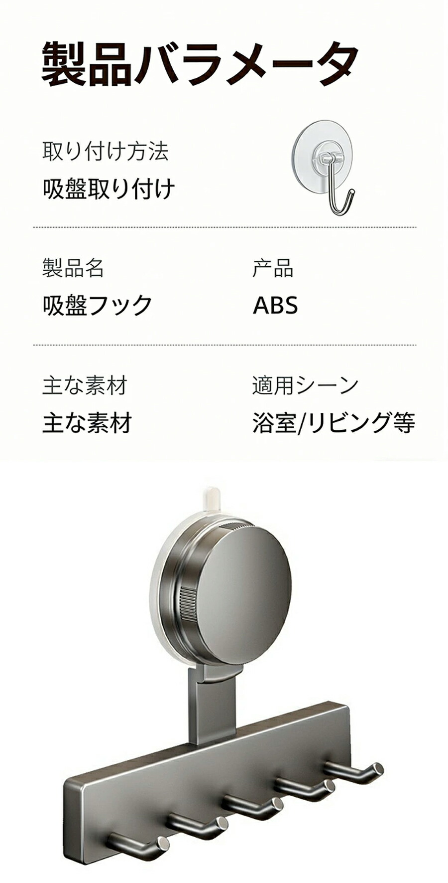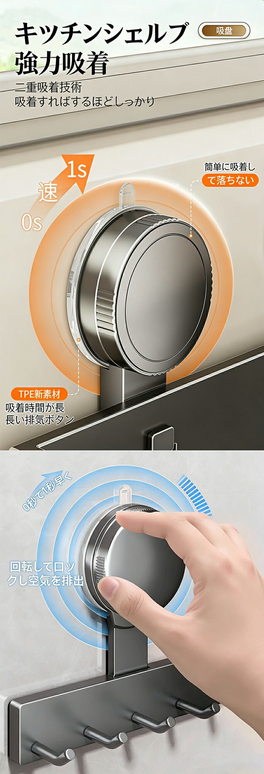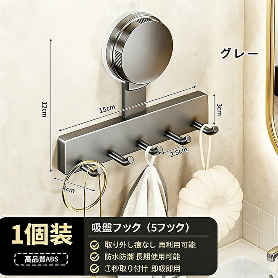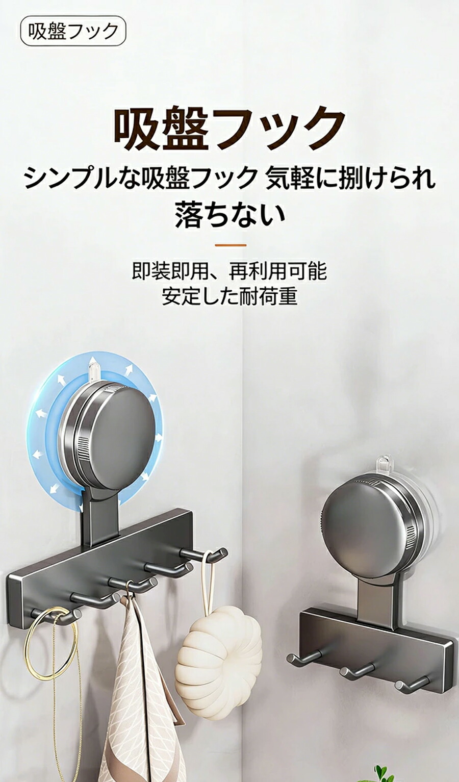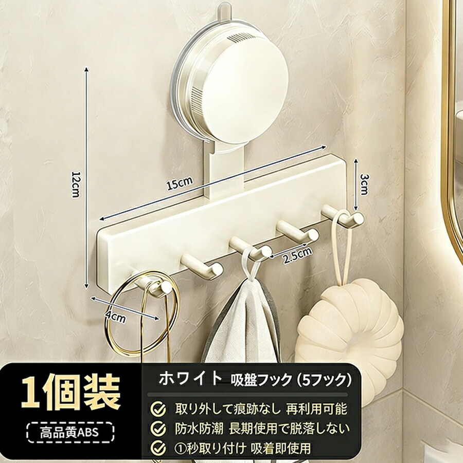 吸盤フック 壁を傷つけない タオル掛け 帽子掛け 真空吸着 おしゃれ ガラス 浴室 冷蔵庫 玄関ドア 簡単 工具不要 貼り直し再利用 防錆 防水 キッチン