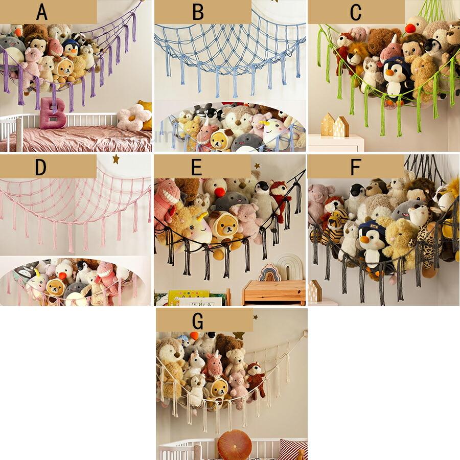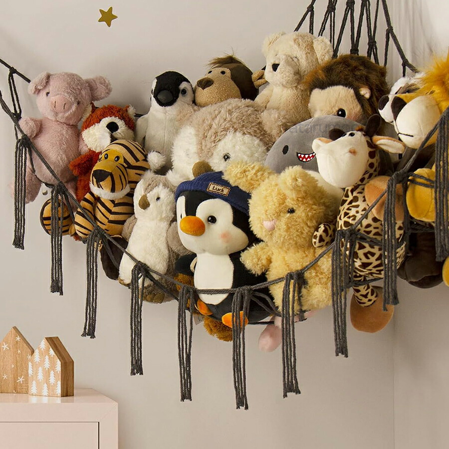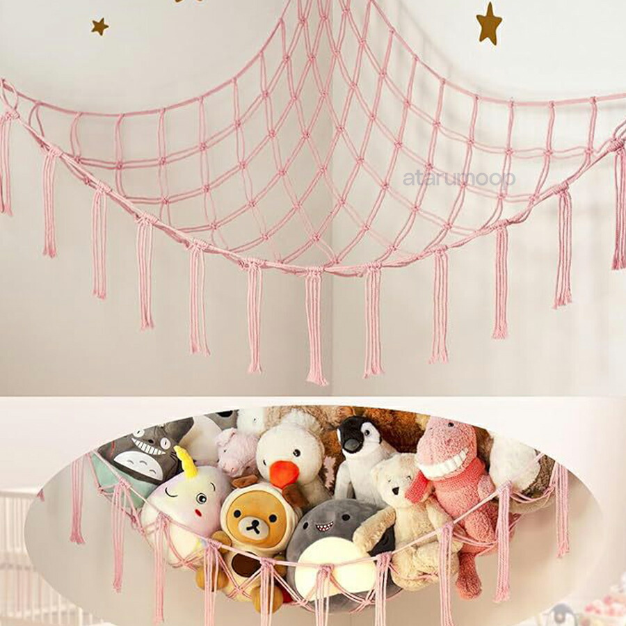 ぬいぐるみ 収納 ハンモック【整理収納アドバイザー監修/穴が目立ちにくいフック付き】 壁掛け 子供部屋 リビング ワンルーム ぬいぐるみハンモック