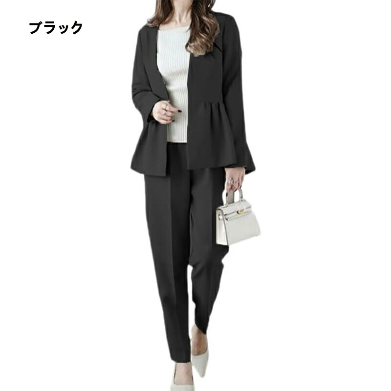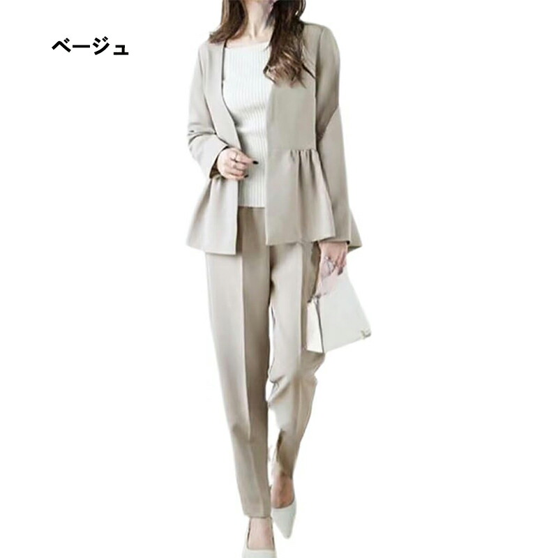 セットアップ レディース カジュアル スーツ セットアップ レディース 上下セット 長袖 テーパードパンツ ジャケット パンツスーツ フォーマル フェミニン 通勤