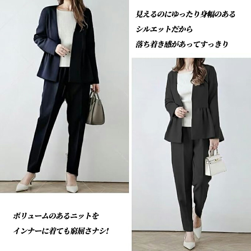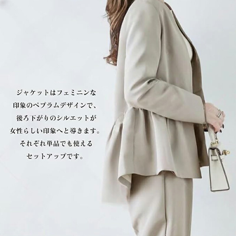 セットアップ レディース カジュアル スーツ セットアップ レディース 上下セット 長袖 テーパードパンツ ジャケット パンツスーツ フォーマル フェミニン オシャレ きれいめ 体型カバー 20代 30代 40代 50代 入学式 卒業式 通勤 春秋冬夏