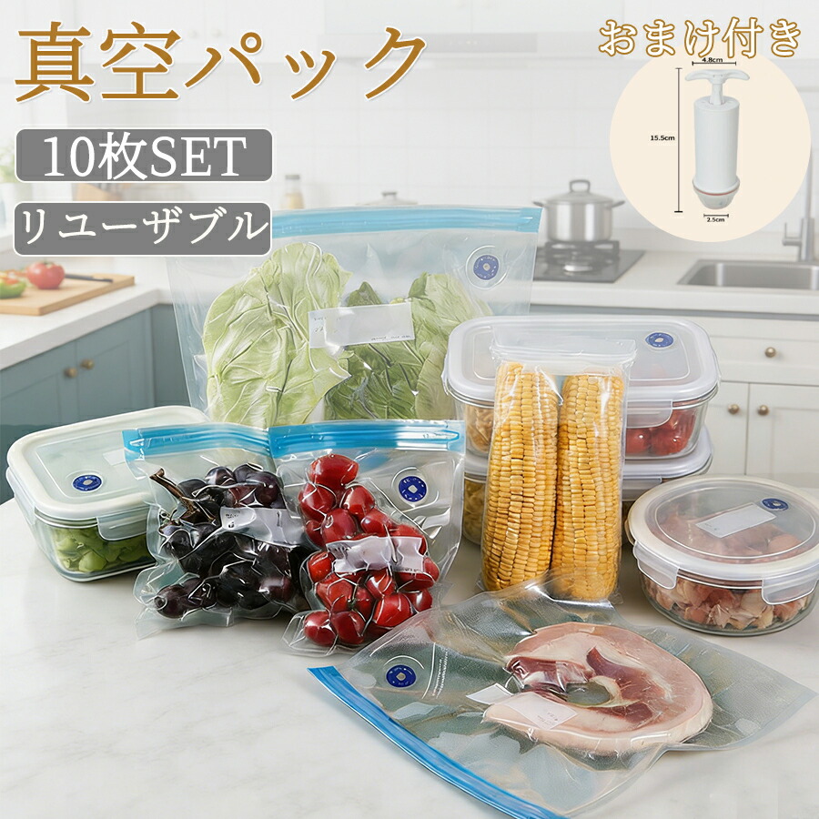 再利用可能 真空パック 袋 大容量 【32*45cm】10枚 真空パック機 真空パック器 携帯用 別売品 専用袋 米 魚 肉 果物 冷蔵 長期保管 真空ビニール エンボス加工