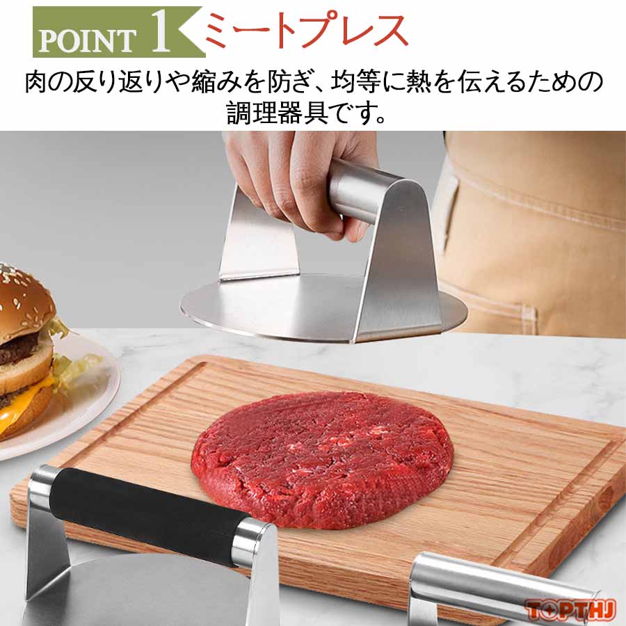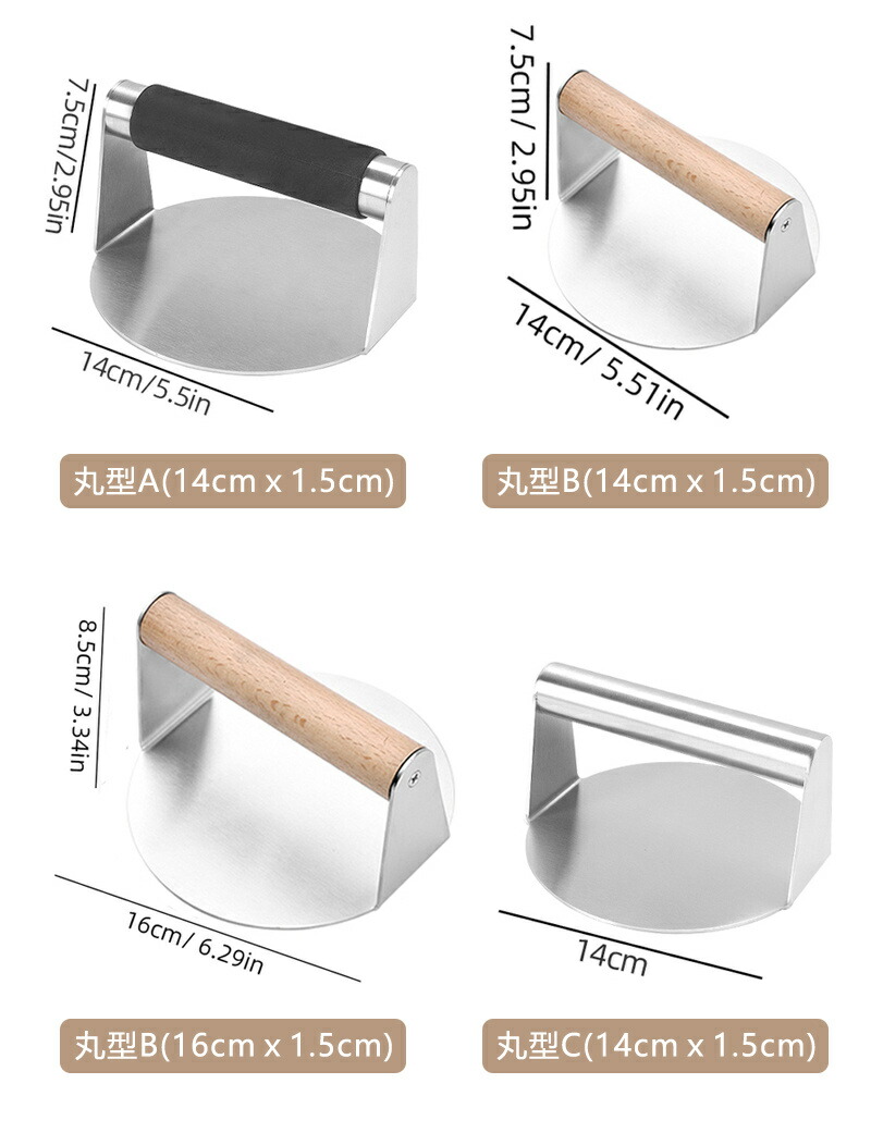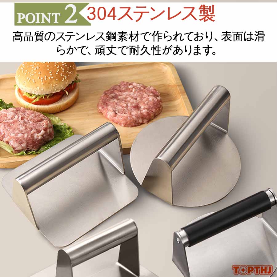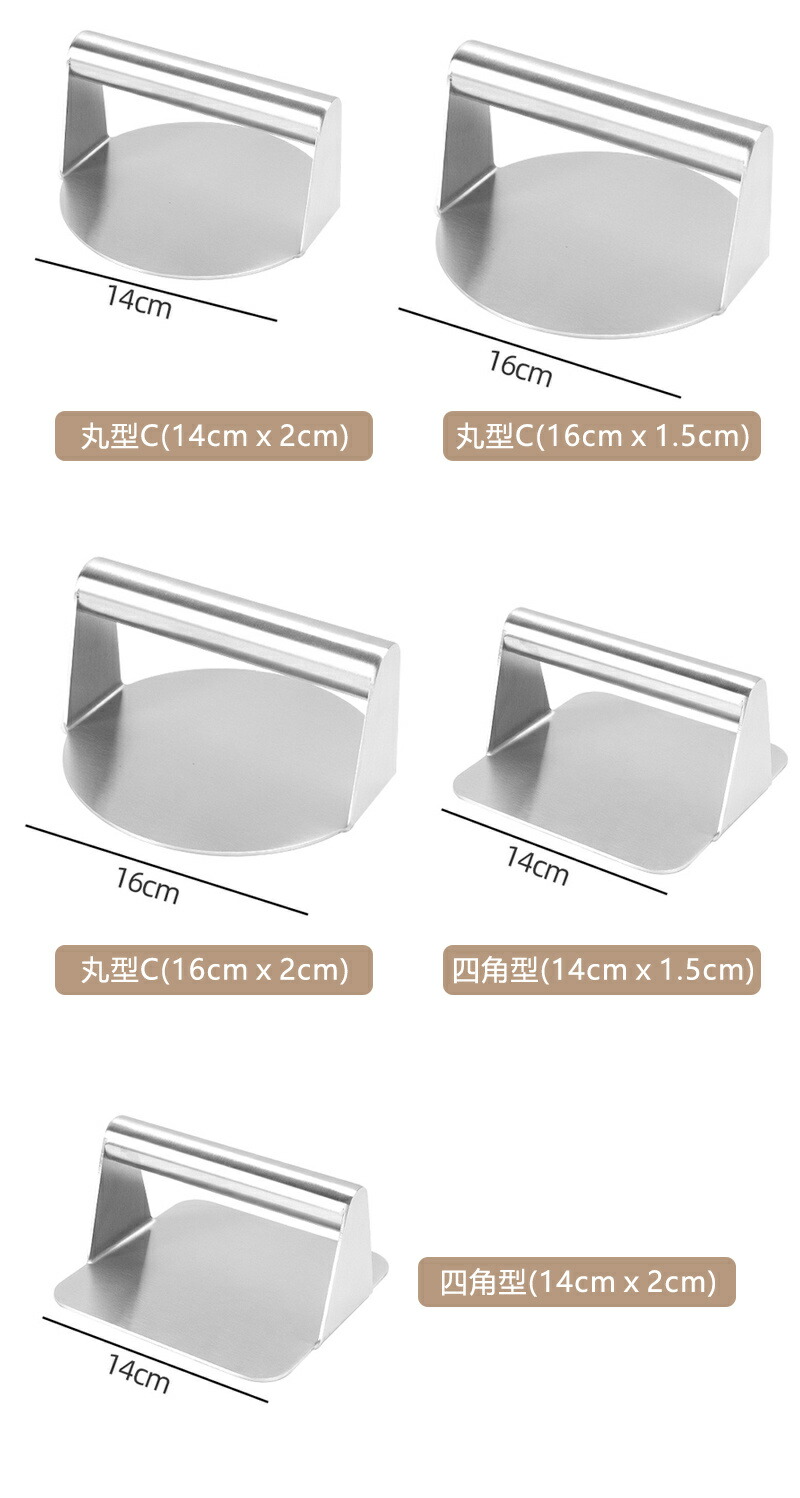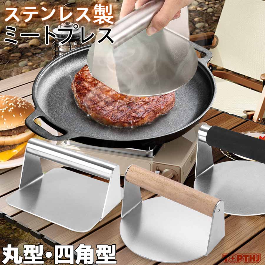 ステンレス製 ミートプレス 丸型 四角 ハンバーガープレス パティ作り 角型 肉おさえ 鉄板焼き用ミートプレス 肉プレス ハンバーガーメーカー キッチンツール