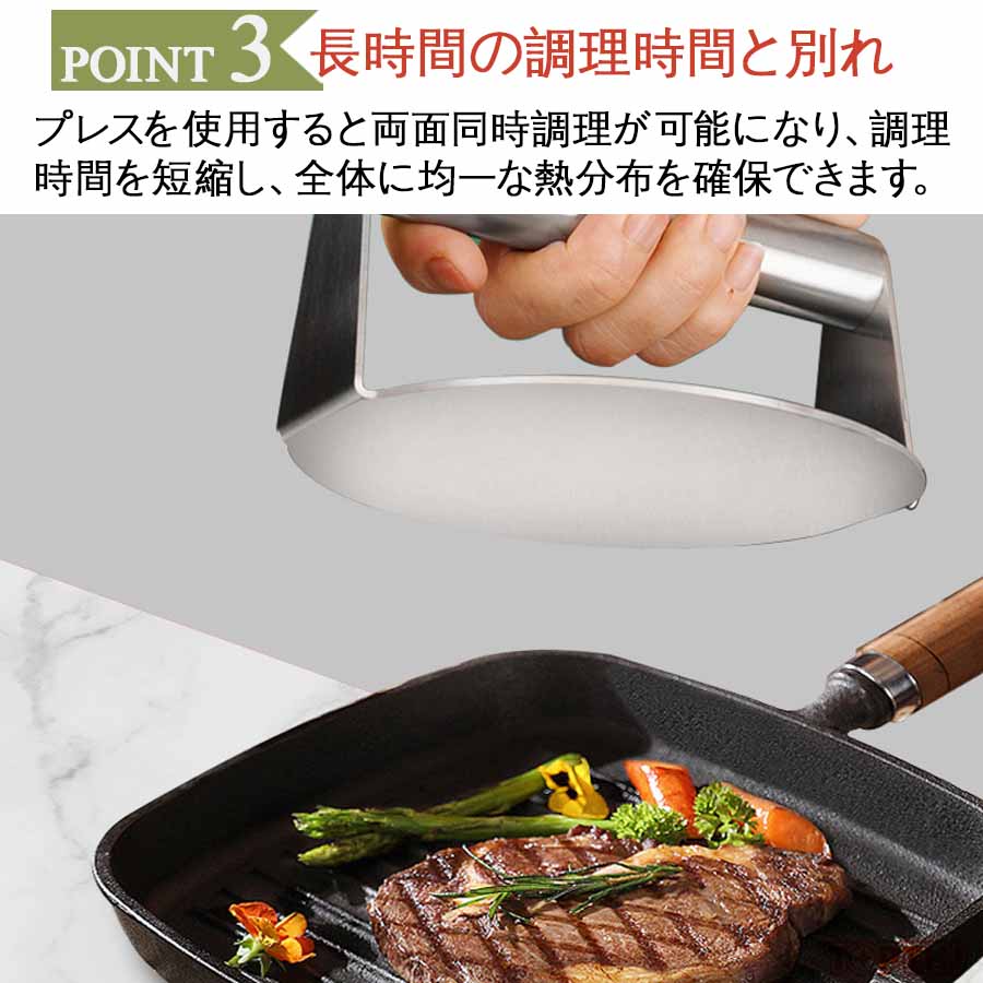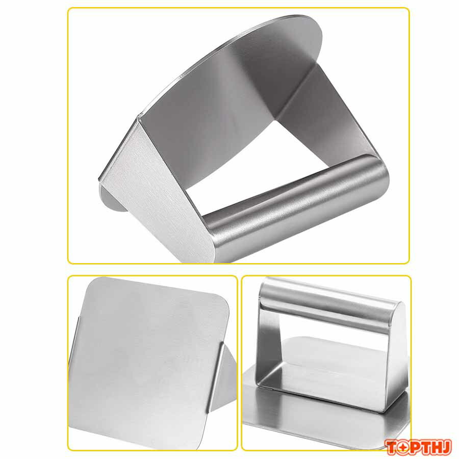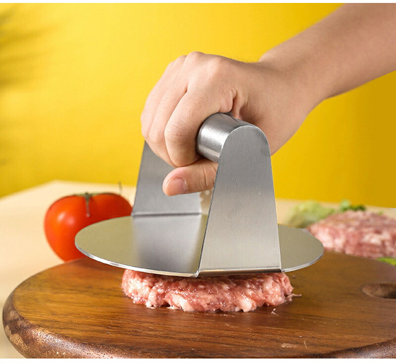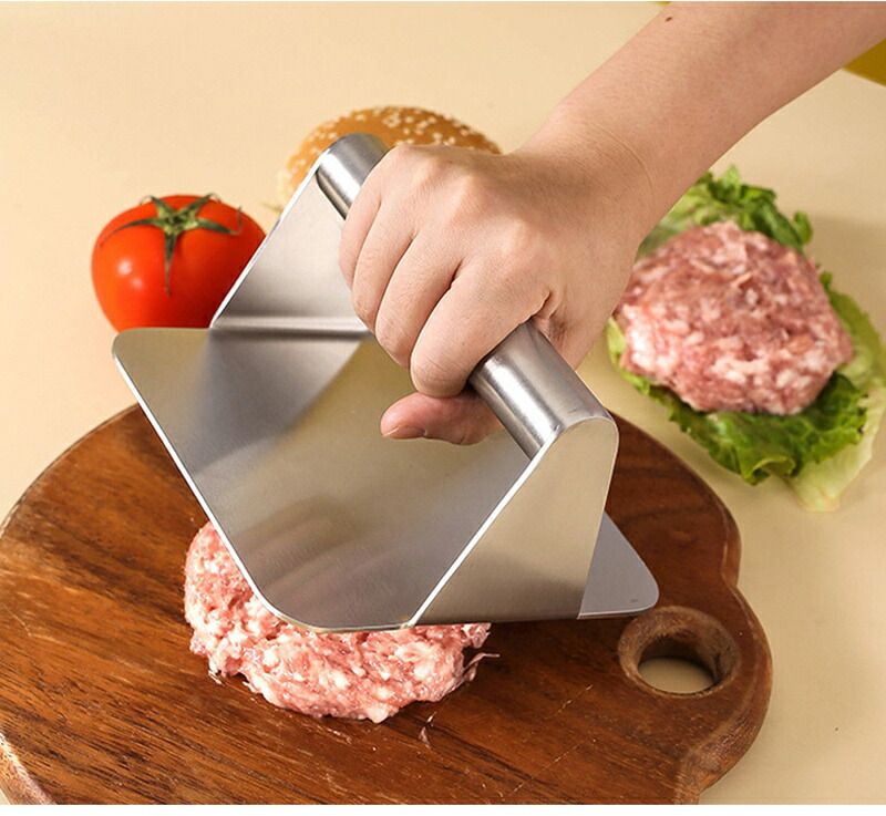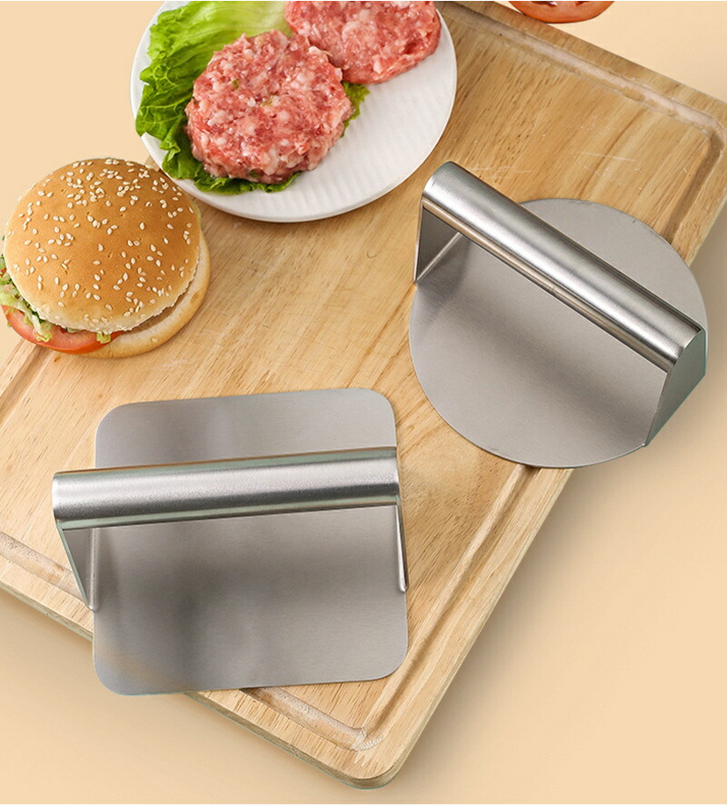 ミートプレスで肉のジューシーさを保ちながら、焼き上がりも均一に♪ ステンレス製 ミートプレス 丸型 四角 ハンバーガープレス パティ作り 角型 肉おさえ 鉄板焼き用ミートプレス Yibao