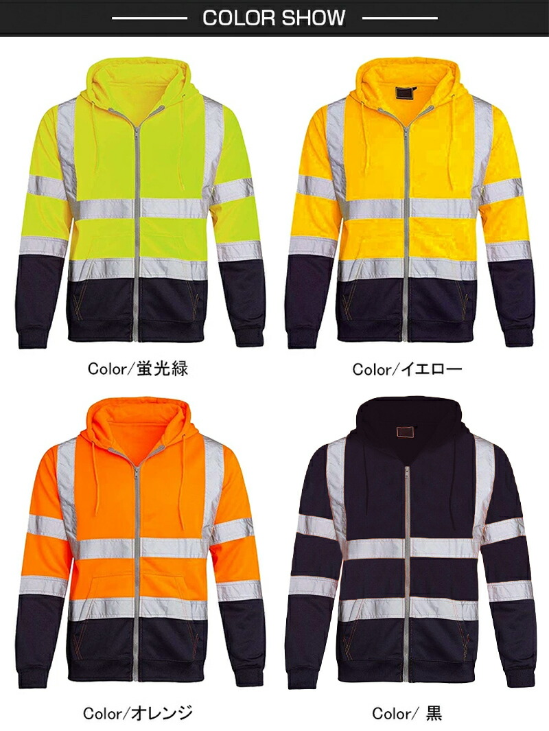裏起毛 作業着 作業服 ジップアップパーカー メンズ レディース フーディー 警備員 安全服 反射テープ ワークウェア おしゃれ ジップパーカー ZIPパーカー シャツパーカー スポーツ イベント カジュアル 高視認性 夜間作業 工事現場 自転車 春秋 秋冬