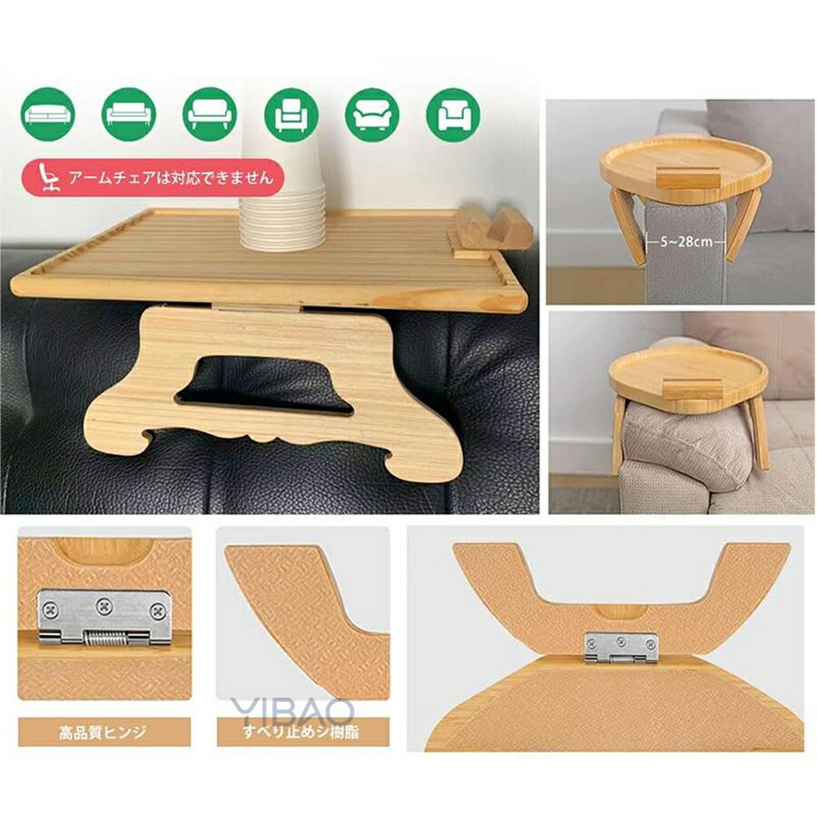 ソファアームレストクリップ アームテーブル 折りたたみ サイドテーブル トレイ ソファー肘掛用 肘置き 円形 長方形 天然竹 木製 ソファアームクリップ旅行用