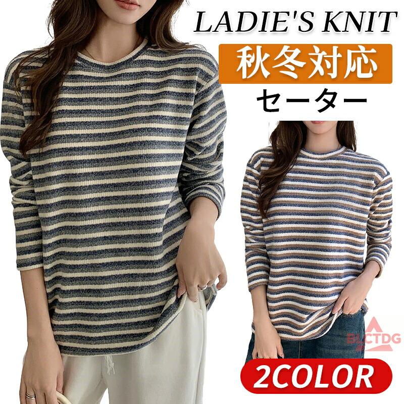 ニット レディース ボーダー柄 セーター クルーネック ニットセーター トップス 暖かい 保温 長袖 ニットトップス オフィスカジュアル 洗えるニット ビジネス 長袖ニット プルオーバー 秋冬 冬 冬服